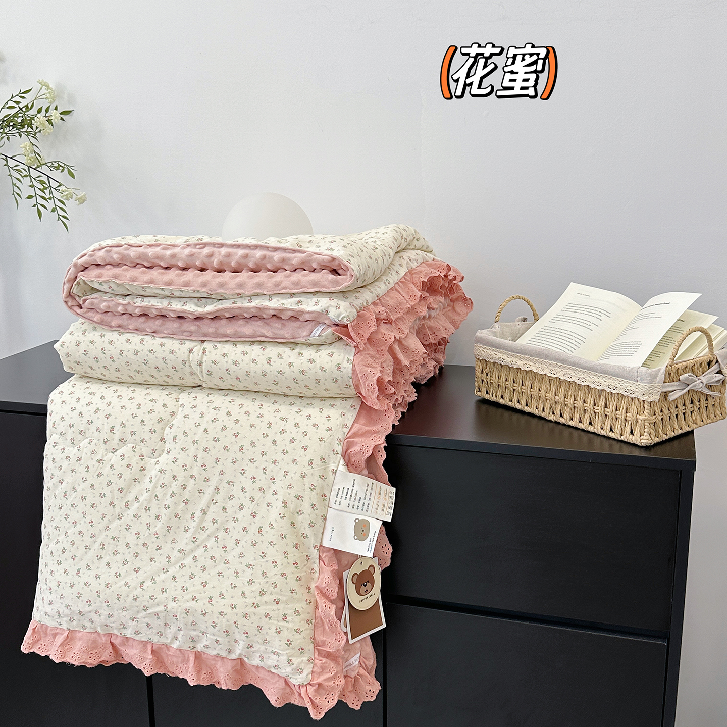 • 91家纺网 家纺一手货源 找家纺 (总)佰织鑫家居 2025新款棉加绒床盖三件套花苞豆豆被四件套,梨花落,落了白