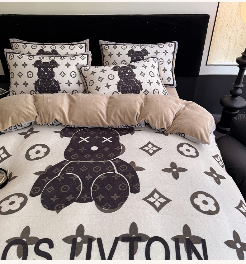 商品名称:摩卡(乐趣) 2025新款牛奶绒大版数码印花四件套(提供买家秀) 熊仔咖