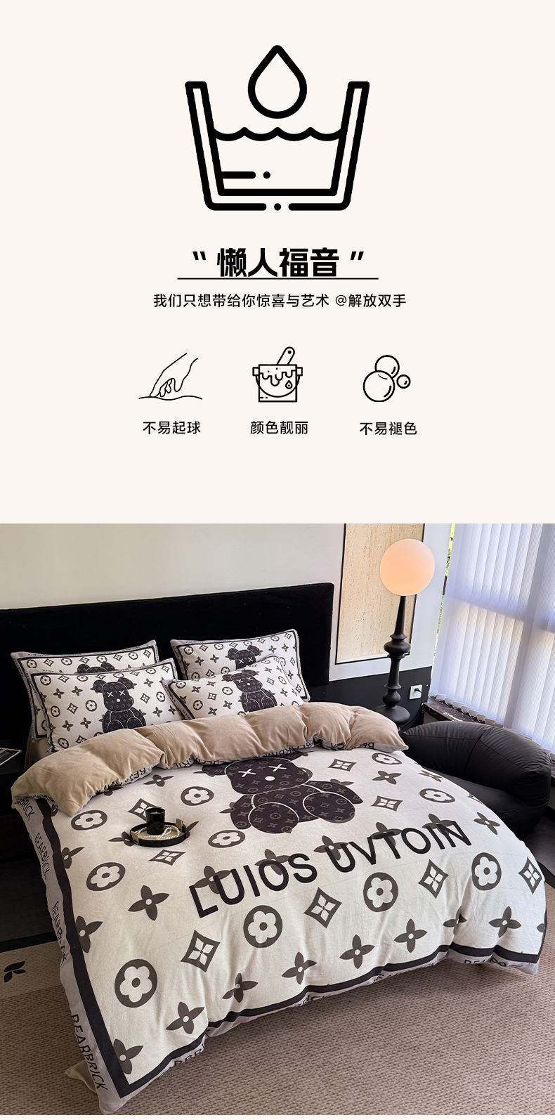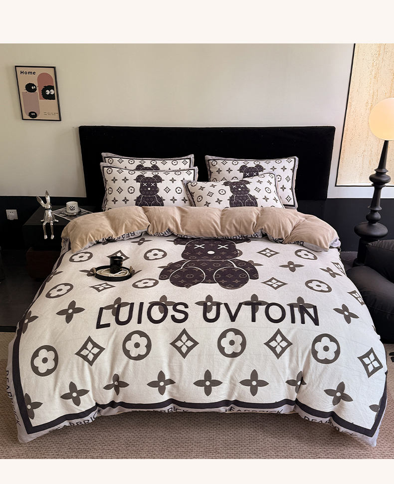 (总)摩卡(乐趣) 2024新款亲肤全棉网红轻奢四件套,H马,大H,粉红兔,黑白迪,黑白V,黑双C,咖古,咖色熊,蓝咖熊,毛绒熊,趴趴熊,七彩迪,小楂花,萌兔