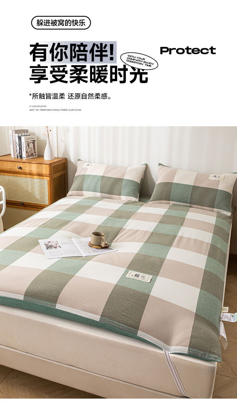 (总)悠米悠家 2025新款新疆棉花学生款可拆洗床垫,宾利兰格,高级灰格,格子控,灰色,极简绿格,简兮格,橘色小格,蓝小格,墨绿小格