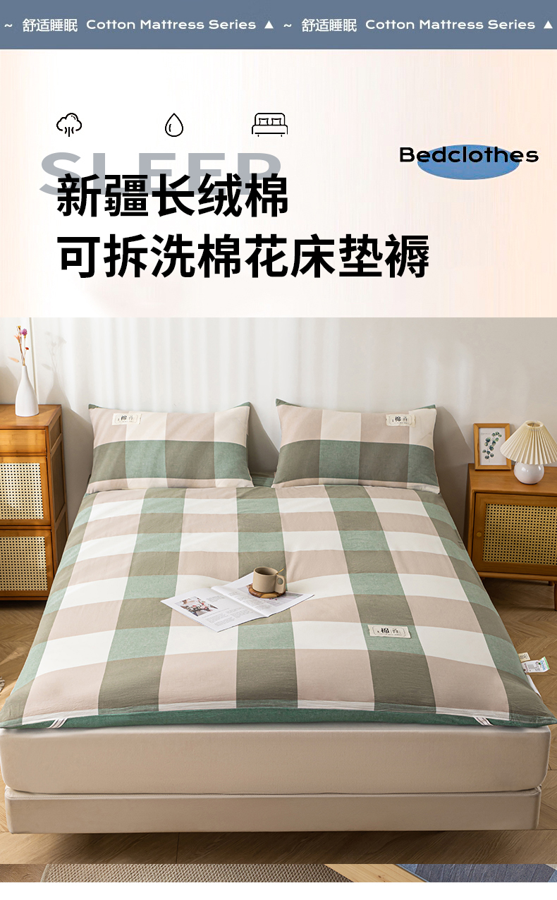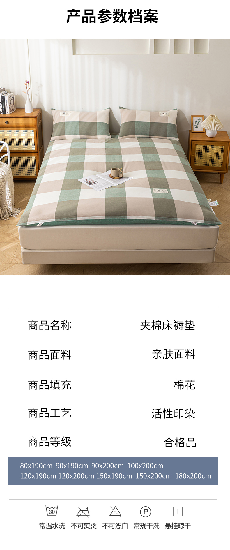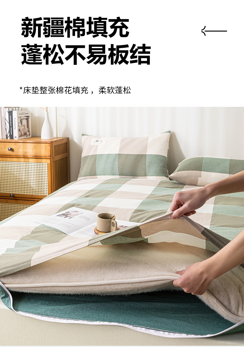商品名称:悠米悠家 2025新款新疆长绒棉可拆洗棉花夹棉床褥垫成人款 极简绿格