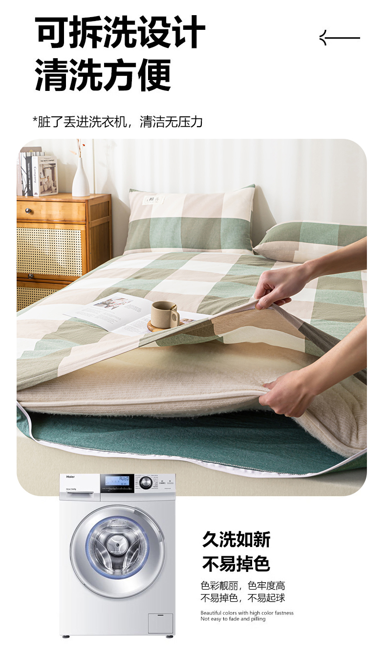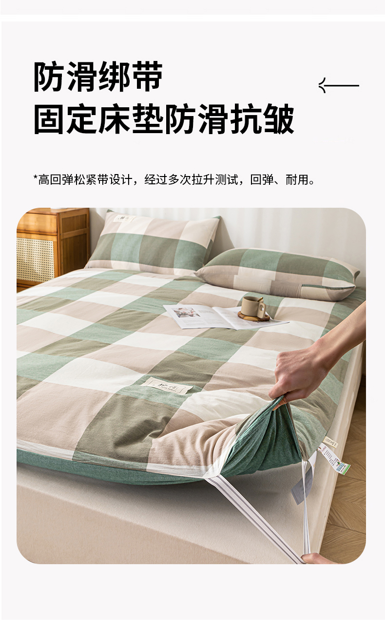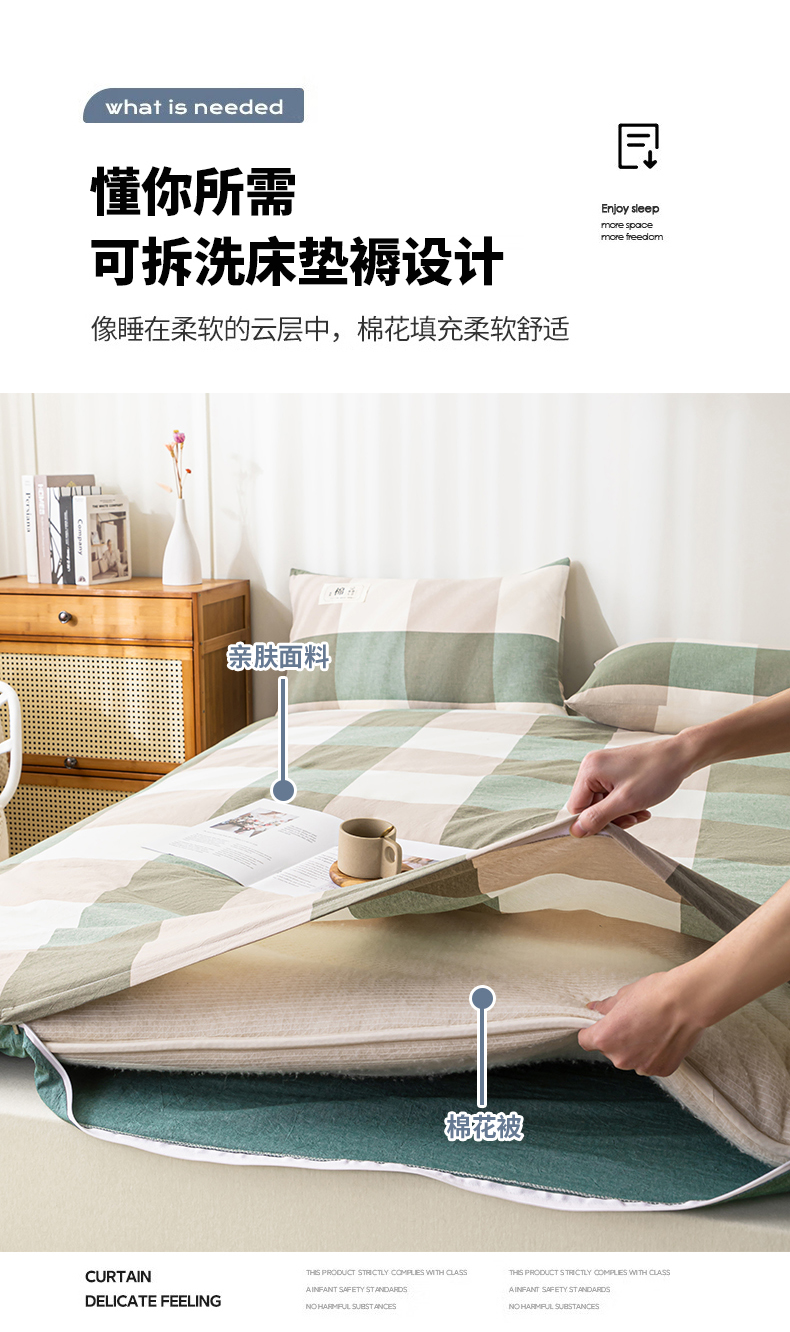 商品名称:悠米悠家 2025新款新疆长绒棉可拆洗棉花夹棉床褥垫成人款 极简绿格
