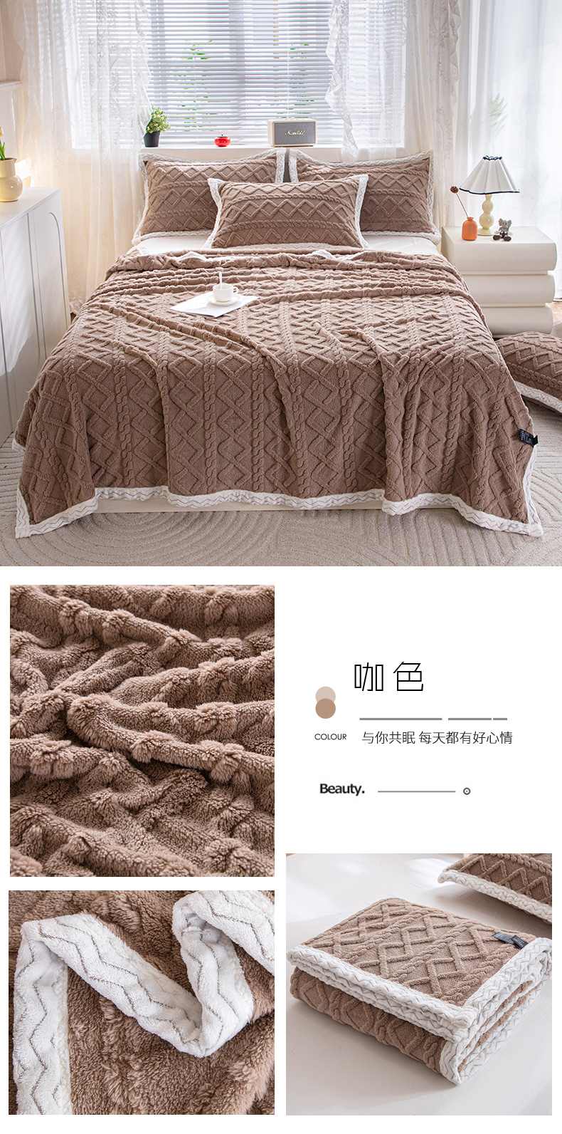 (总)栩裕纺织 2025新款宝宝绒夹棉单床盖-大蕾丝花边款,宝蓝,橙色,粉色,湖蓝,灰色,卡其色,皮红,中国红,紫色