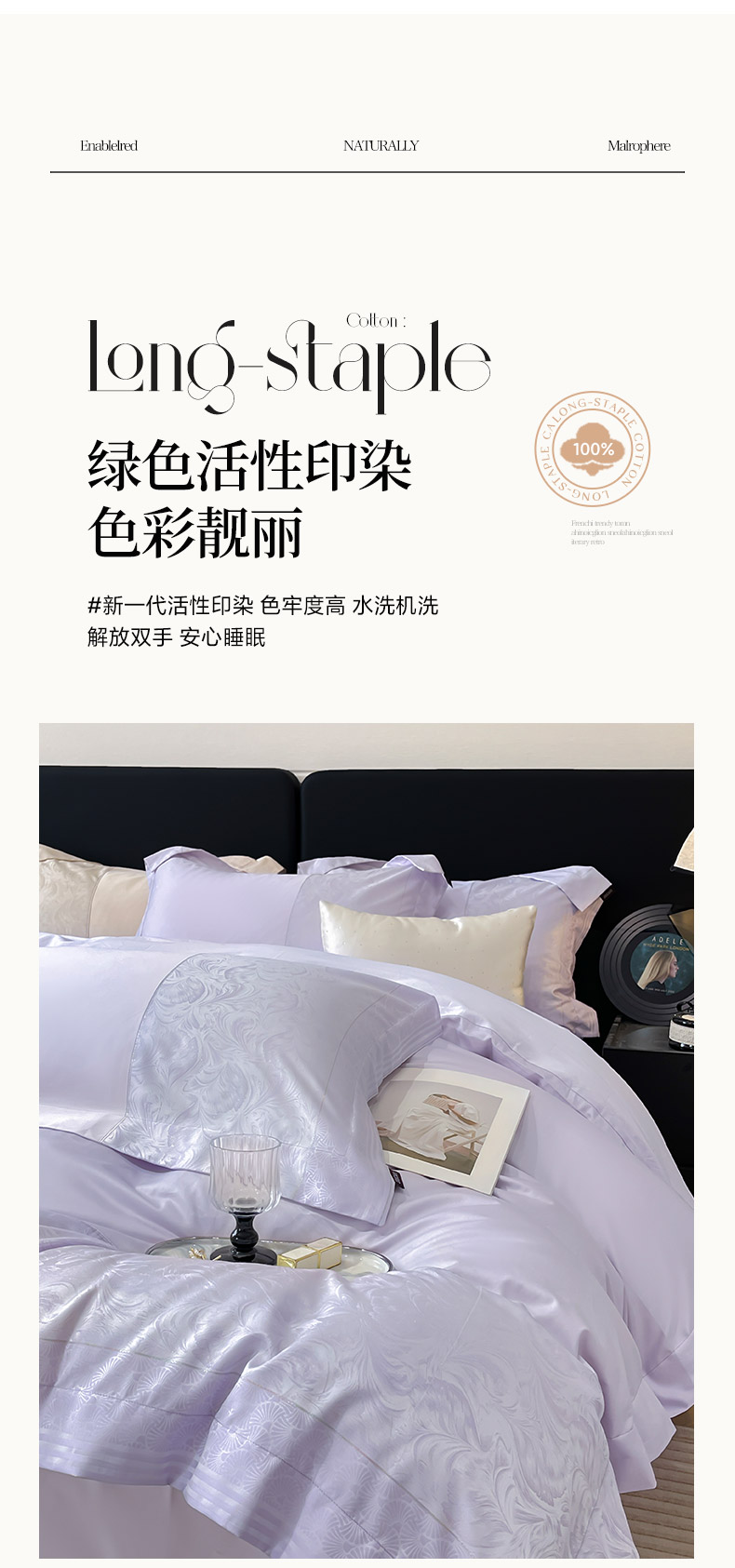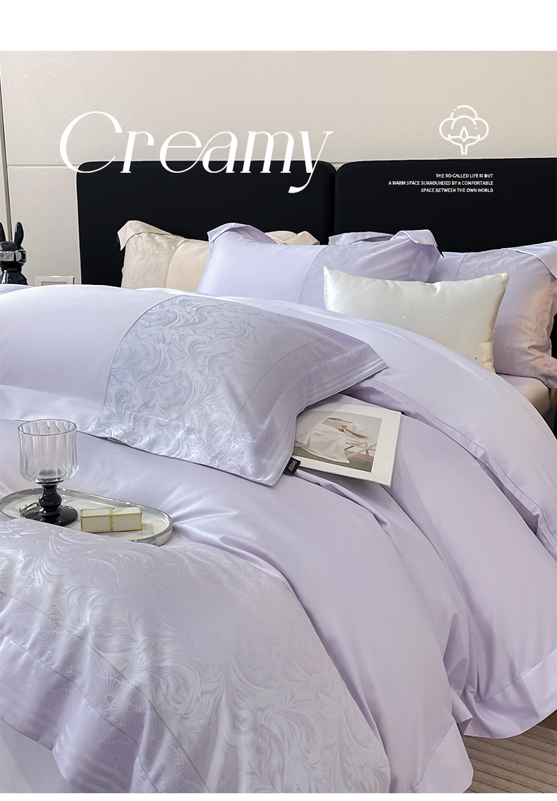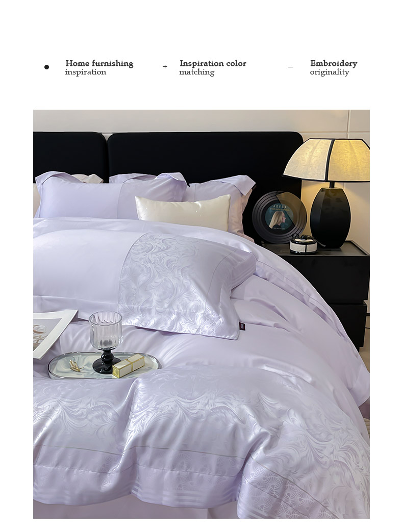 商品名称:2025新款高端A类贡缎提花长绒棉四件套纯棉全棉拼接被套纯色被套爆款床上用品-南翎 南翎-黛紫