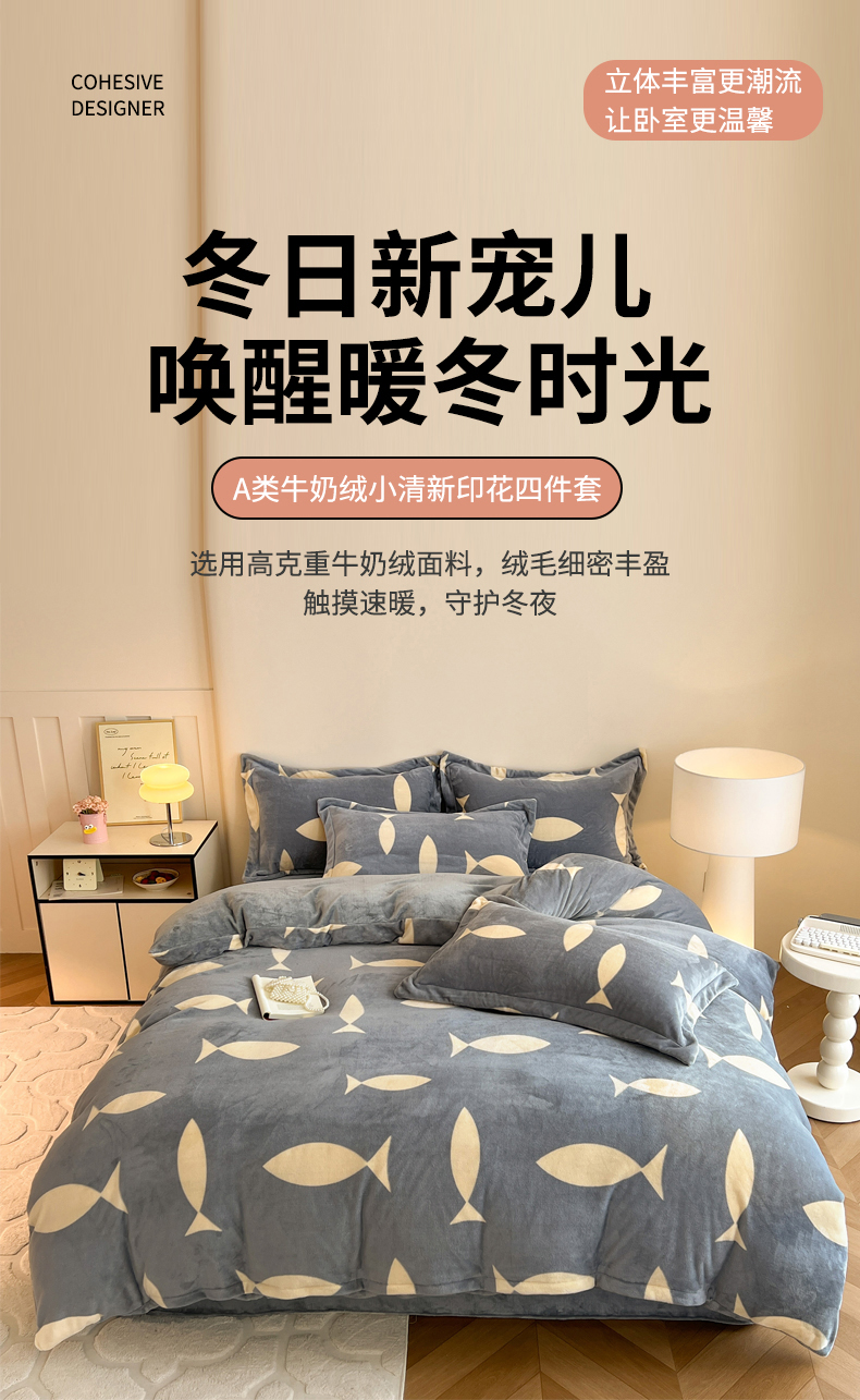 商品名称:(总)富馨莱 2025新款牛奶绒印花四件套240克面料支持一件定制尺寸