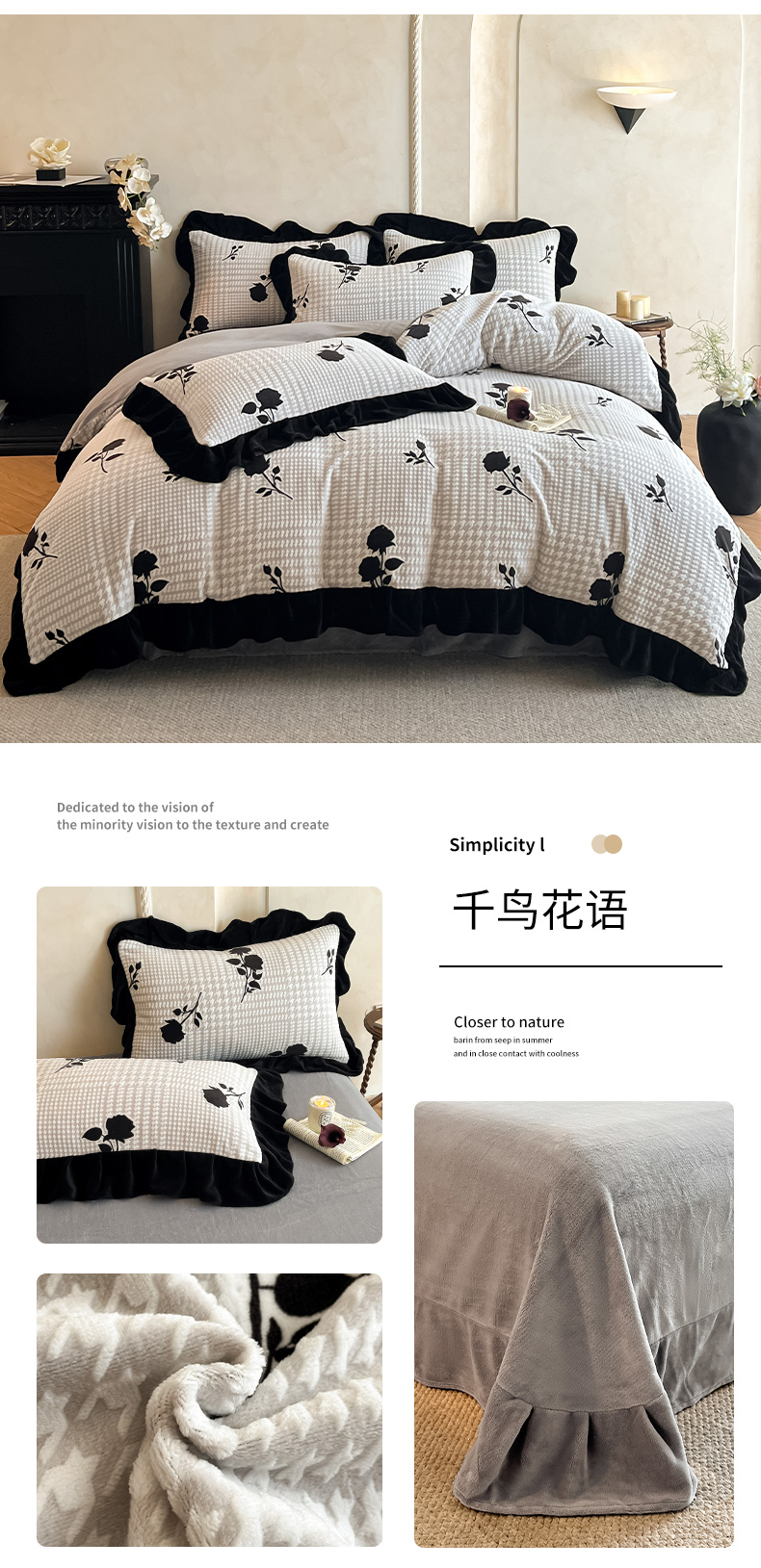 商品名称:佳品居 2025新款法式复古雕花绒四件套 千鸟花语