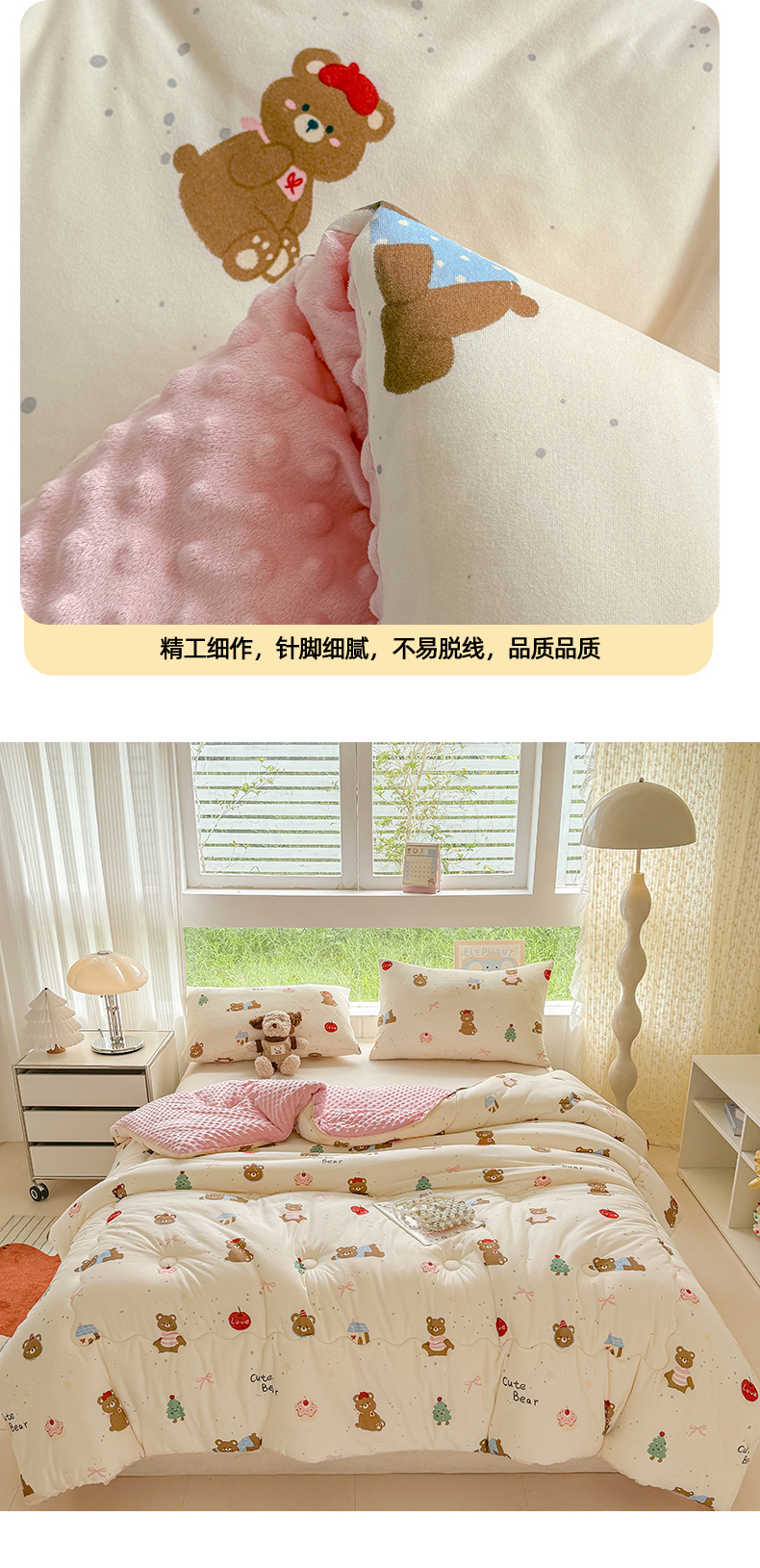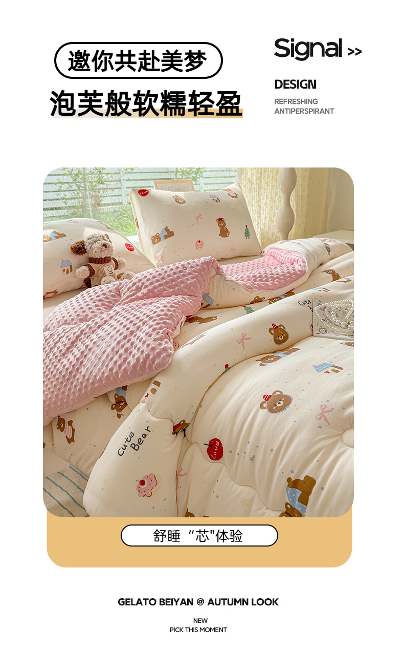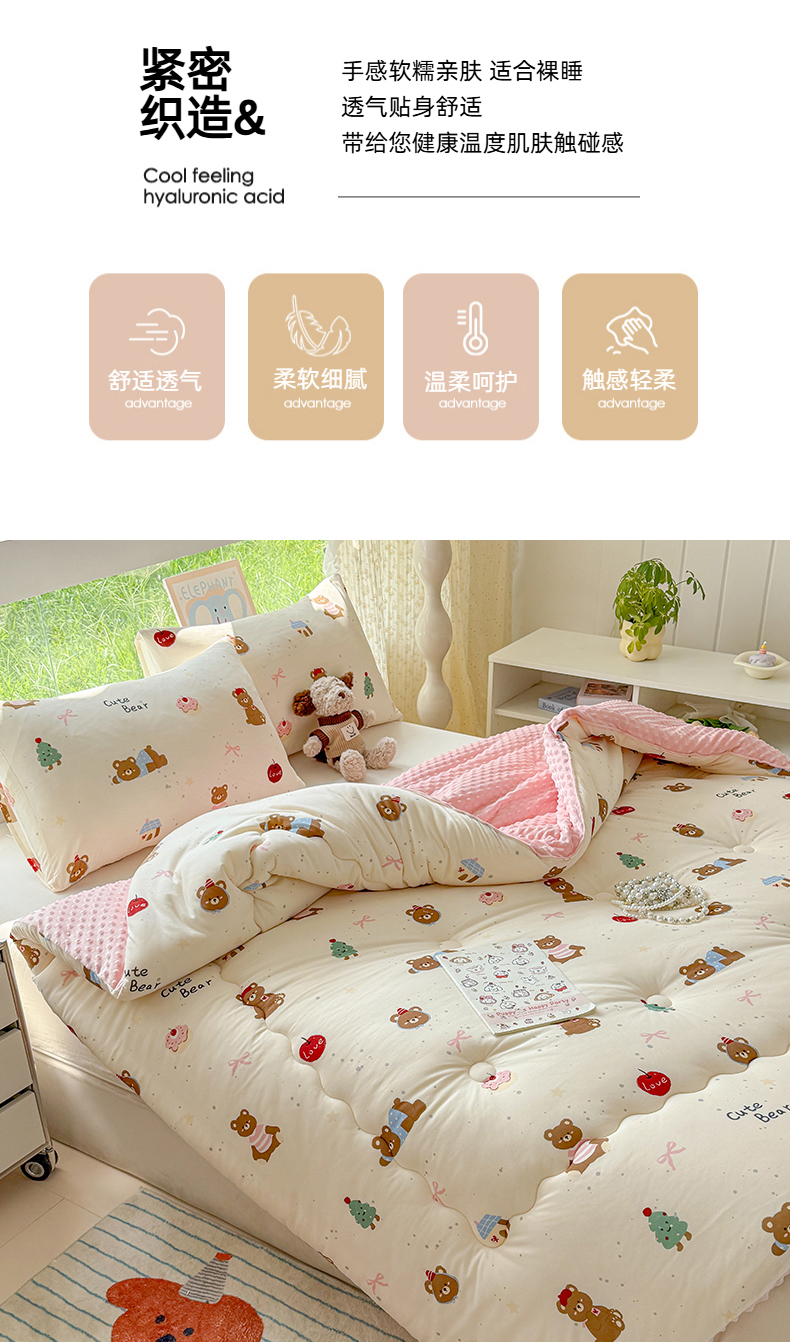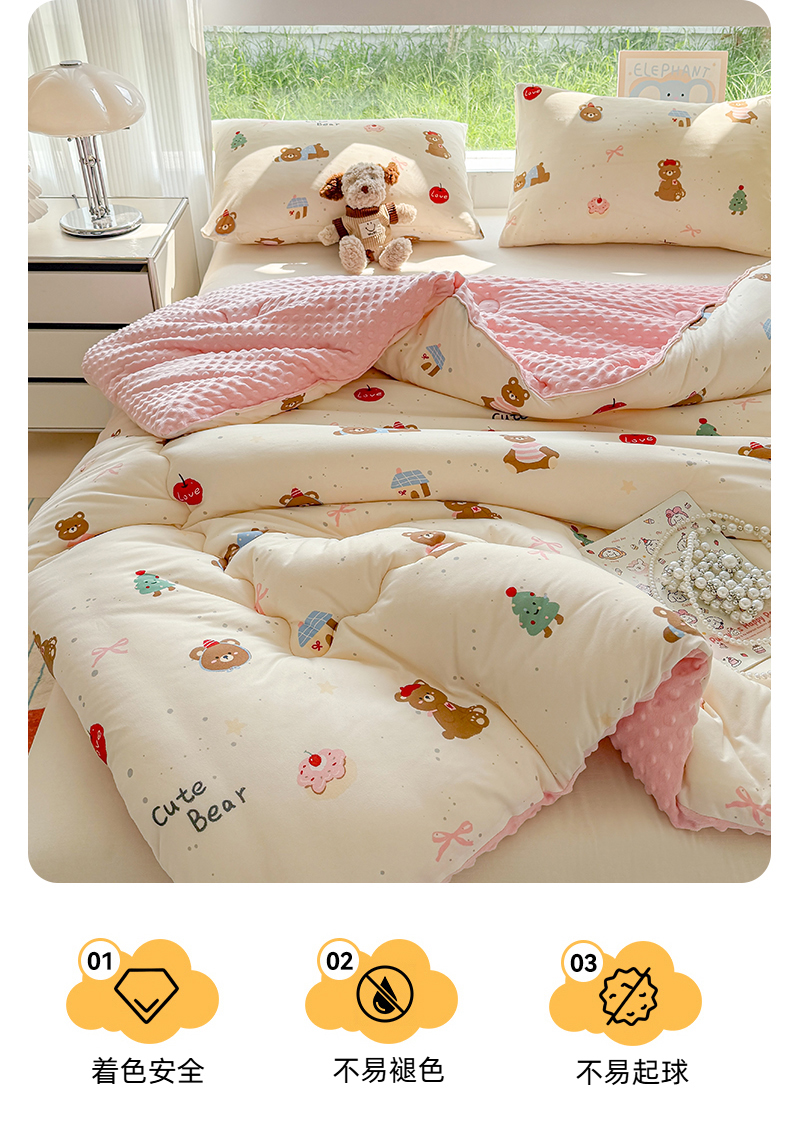 • 91家纺网 家纺一手货源 找家纺 天瑜家纺 2025新款针织棉豆豆绒大豆被冬被被子被芯 可爱熊粉
