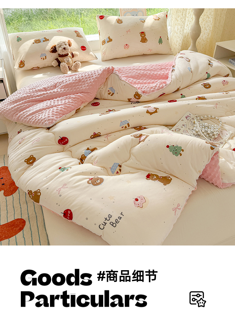 当前位置: 91家纺网 > 商品网购 > 被子 > 冬被 > 天瑜家纺 2025新款针织棉豆豆绒大豆被冬被被子被芯 可爱熊粉