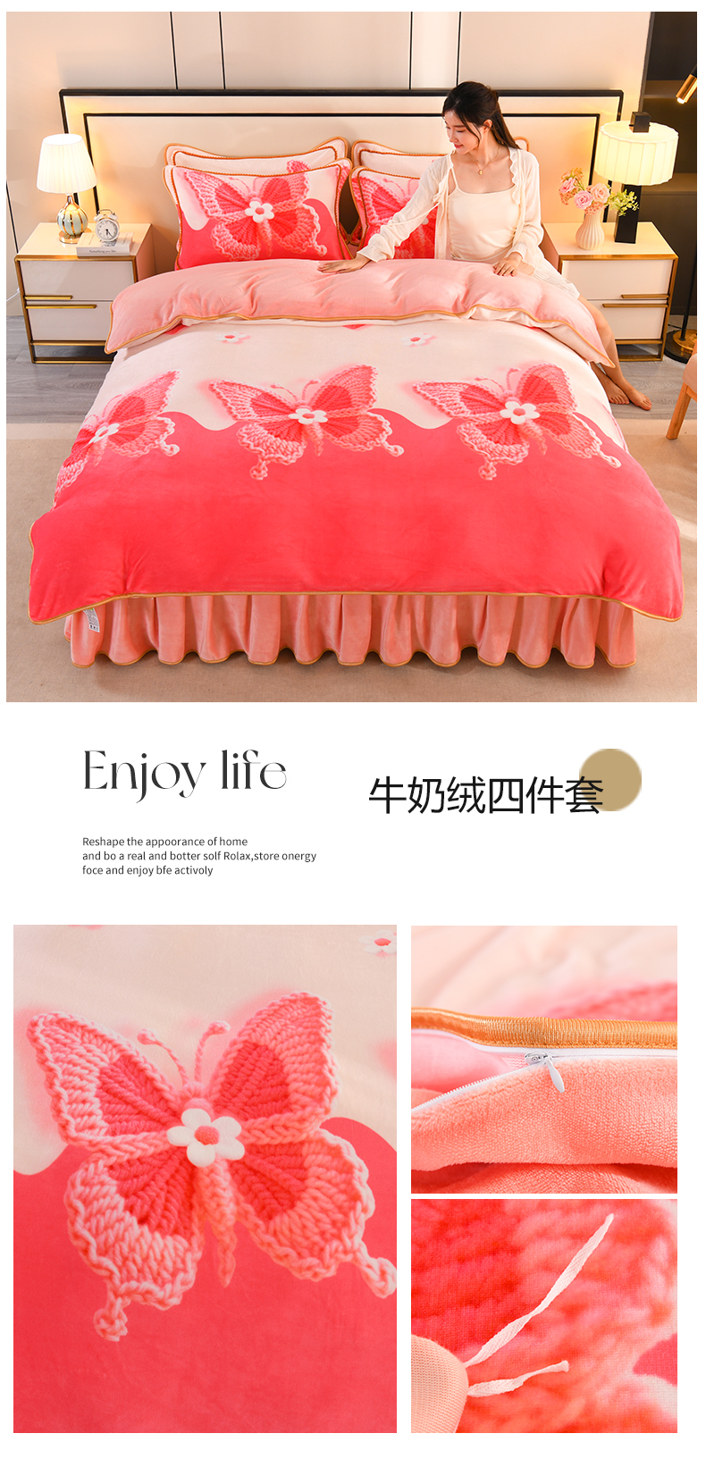 商品名称:雨洋2025新款加厚保暖8.5斤牛奶绒金貂婴儿绒四件套 翩翩起舞