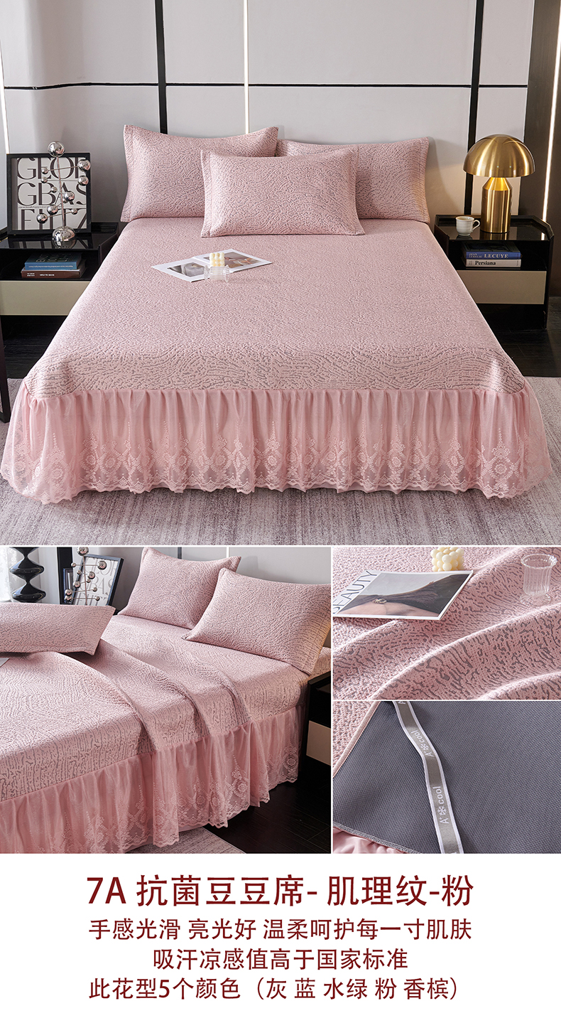 商品名称:梵克保罗 2025新款7A抗菌母婴级纯乙纶PE刺绣凉感丝豆豆席床单款 斜条纹-灰