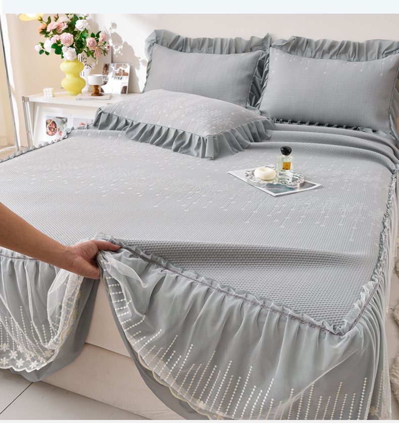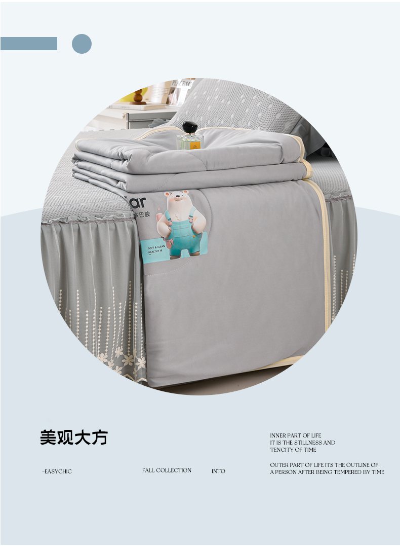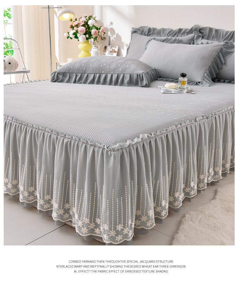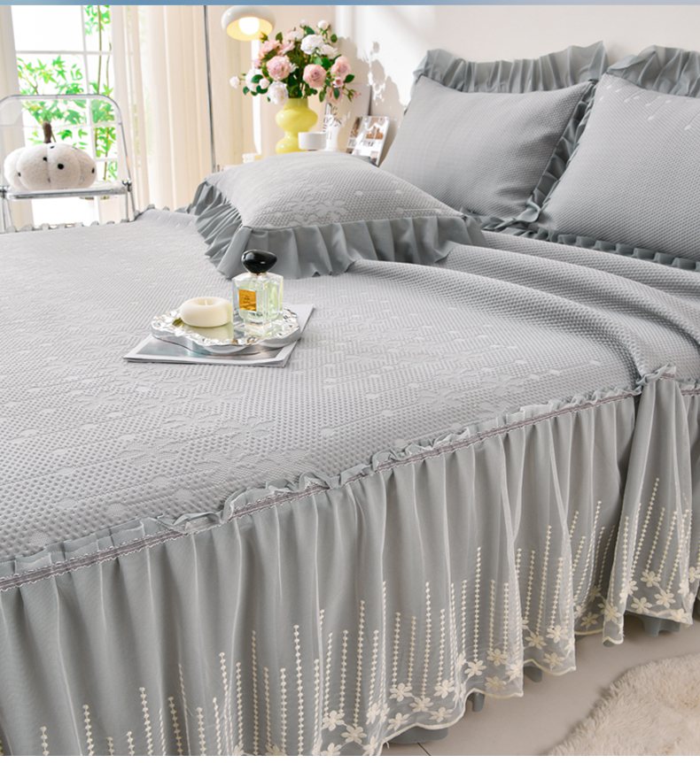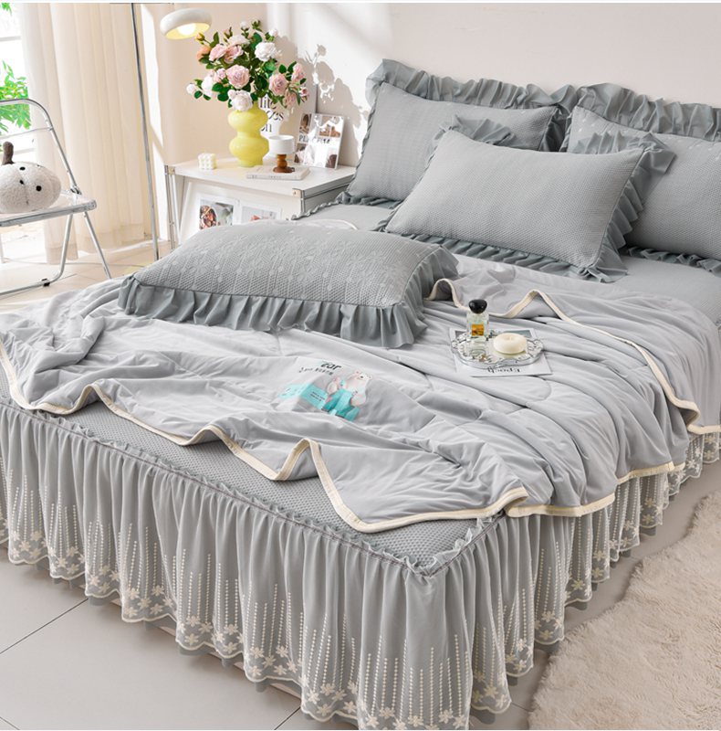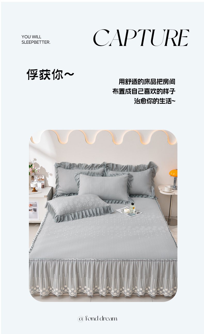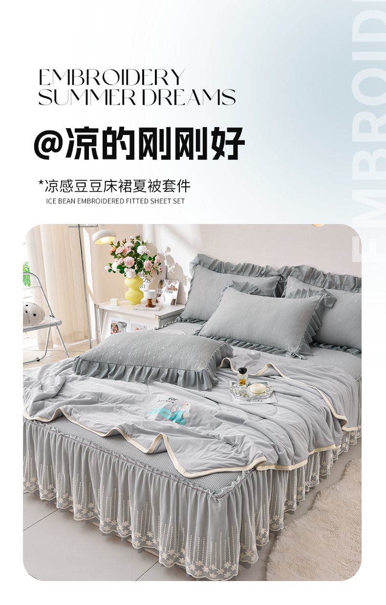 商品名称:梵克保罗 2025新款凉感豆豆床裙夏被四件套 幸运花 高级灰