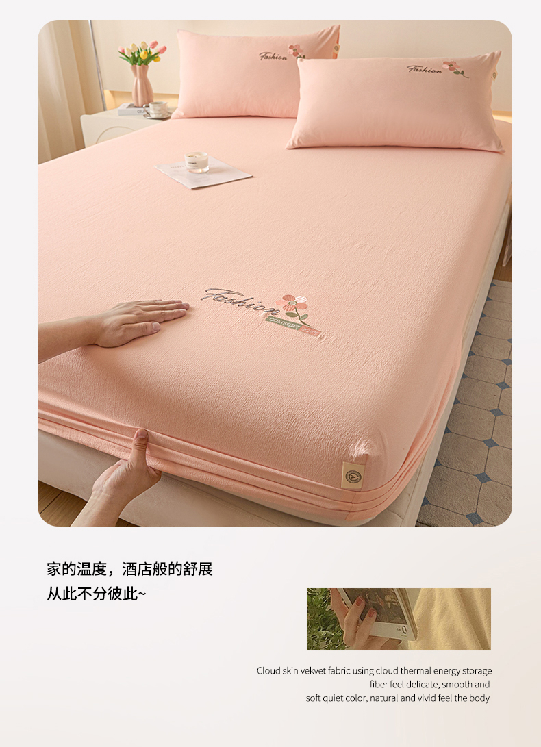 商品名称:(总)鑫钰 2025新款A类云麻绣花抗菌透气床笠-芙洛拉