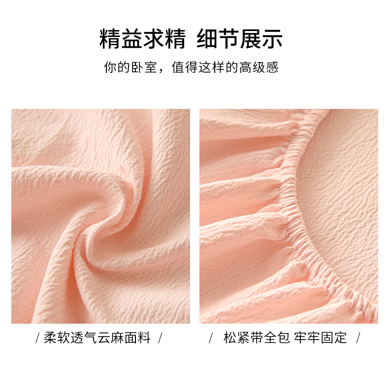 (总)鑫钰 2025新款A类全棉双棉皱皱纱床笠,淡雅绿,简约驼,奶茶白,气质灰,浅灰色,天空蓝,仙女粉,香妃紫
