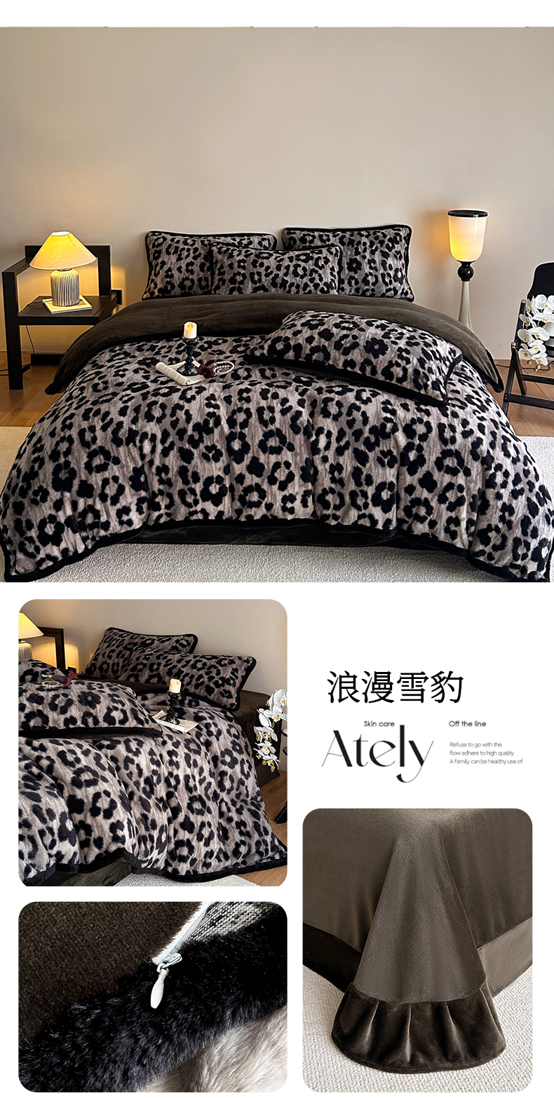 当前位置: 91家纺网 > 商品网购 > 床品套件 > 四件套 > 牛奶绒四件套 > 铠畅 2025新款加厚8斤包边款美拉德仿兔毛皮草牛奶绒四件套 美拉德包边款-浪漫雪豹
