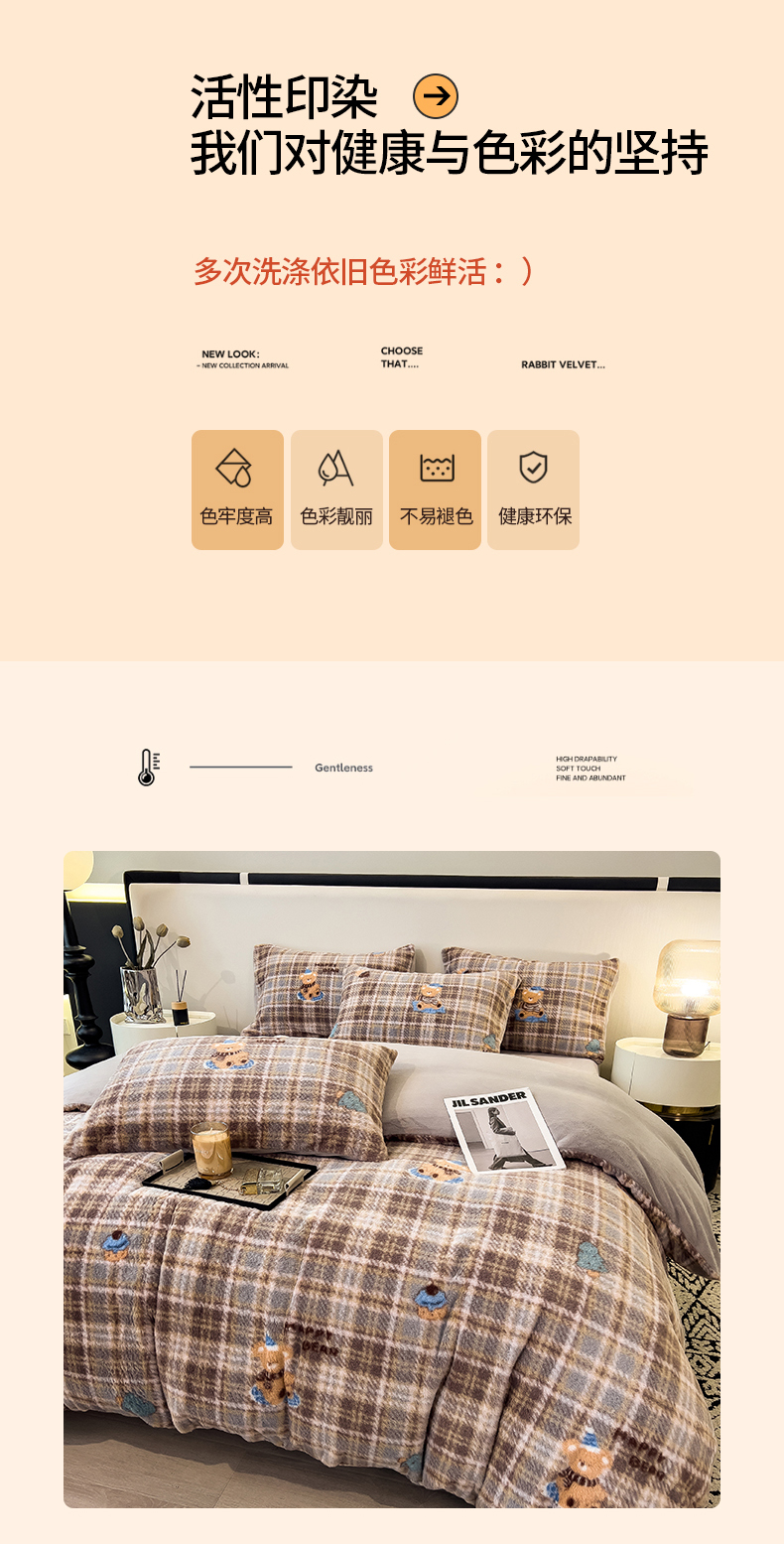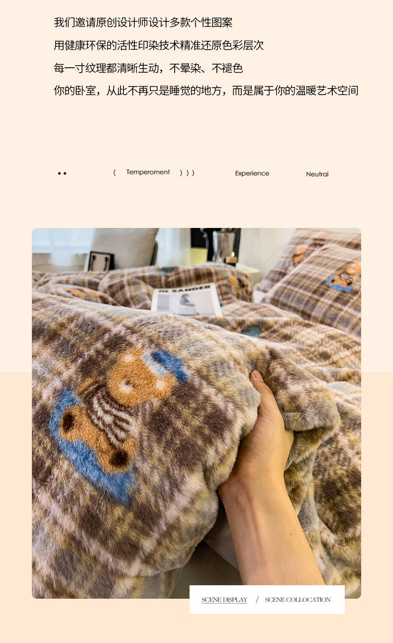 当前位置: 91家纺网 > 商品网购 > 床品套件 > 四件套 > 其它四件套 > 倾慕家纺 2026新款高克重兔毛绒保暖四件套 线格熊兰绿