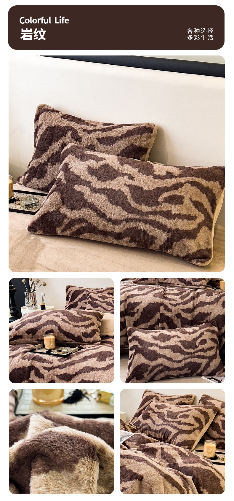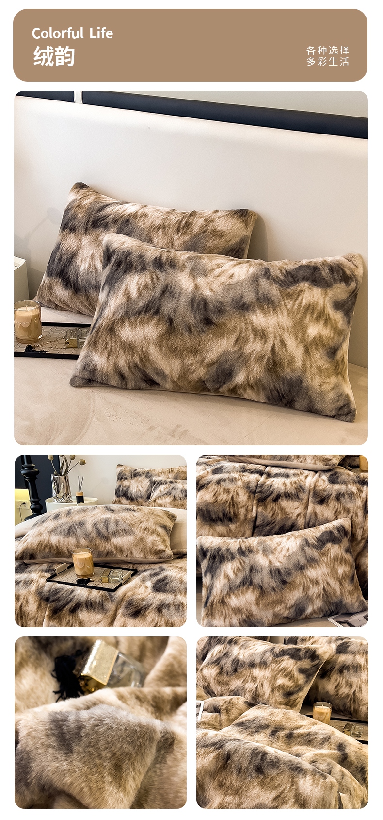 商品名称:倾慕家纺 2026新款高克重兔毛绒保暖单枕套 泥点曲线灰