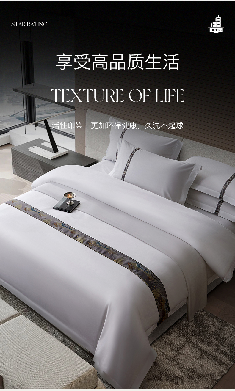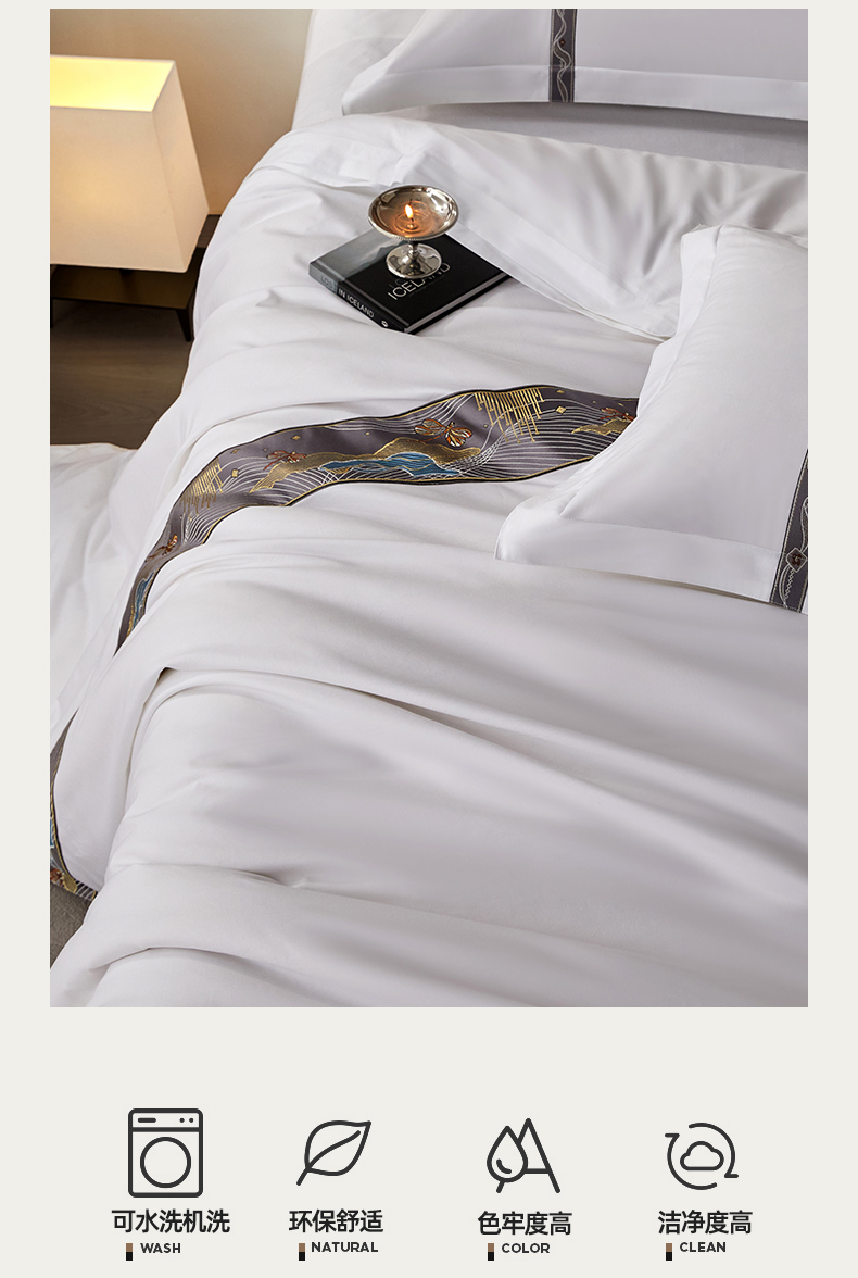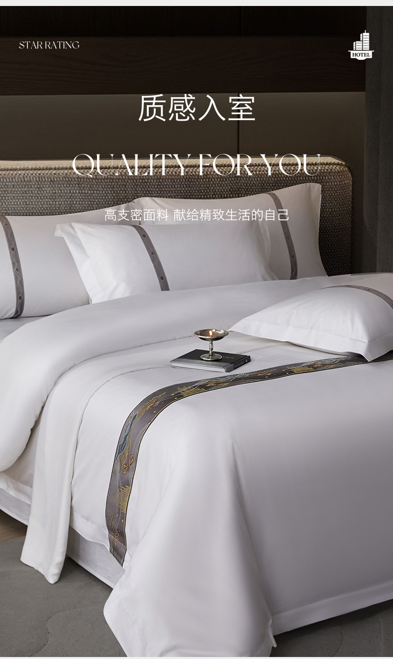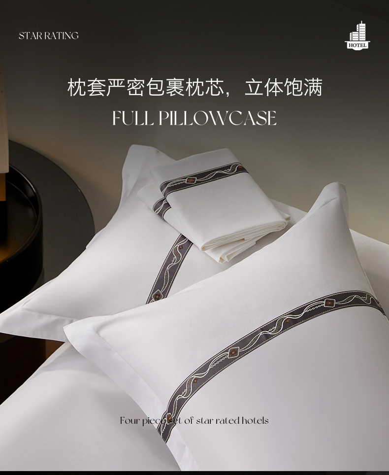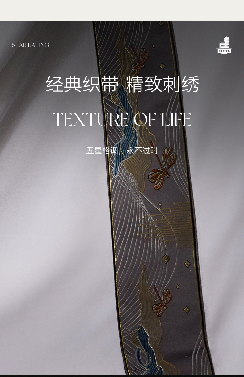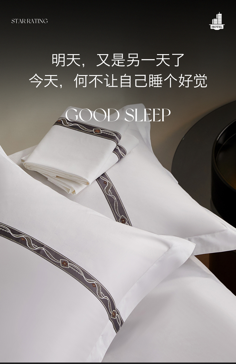 当前位置: 91家纺网 > 商品网购 > 床品套件 > 四件套 > 其它四件套 > 罗菲尼酒店用品 2025新款高仿棉织带款酒店宾馆四件套 夏日 灰