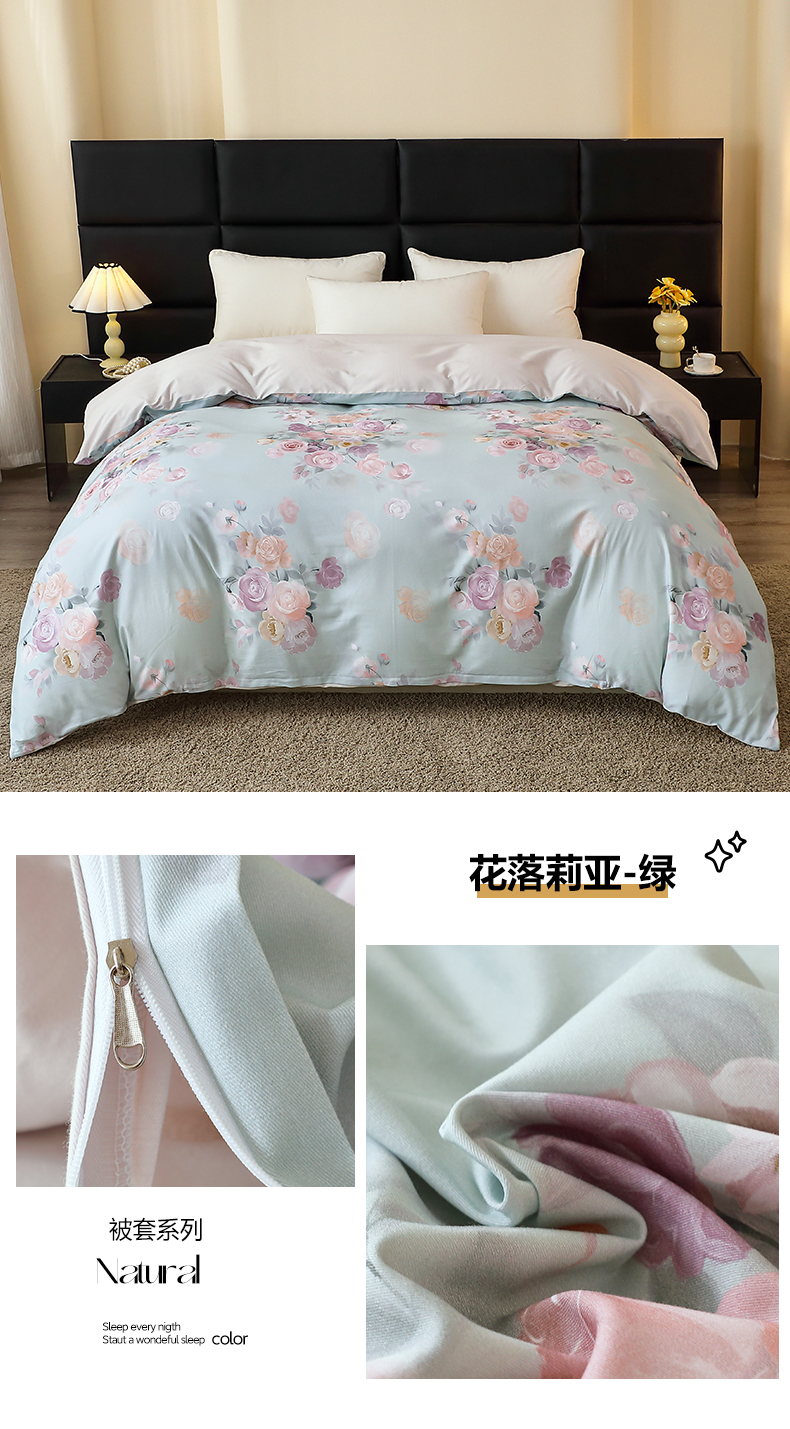 商品名称:馨雅家纺 2025新款全棉磨毛数码印花单品被套 花落莉亚-绿