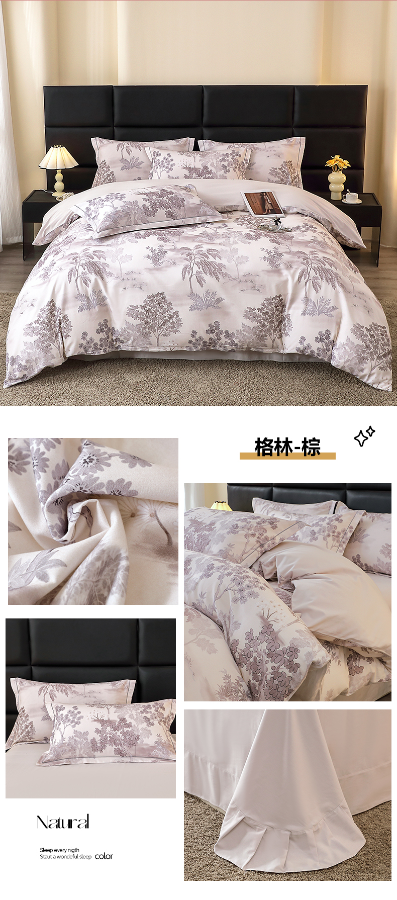 商品名称:馨雅家纺 2025新款全棉磨毛数码印花四件套 格林-棕