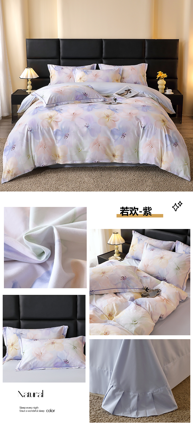 商品名称:馨雅家纺 2025新款全棉磨毛数码印花四件套 若欢-紫