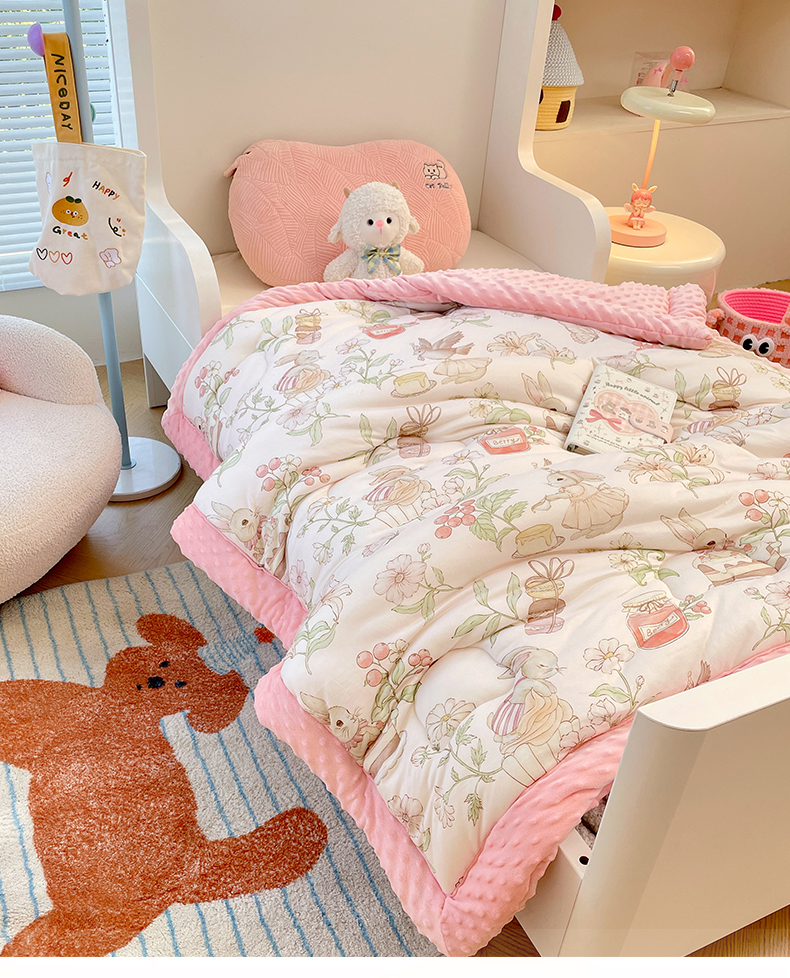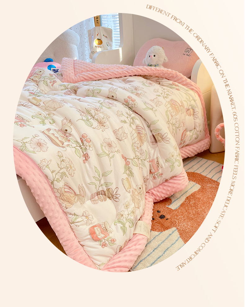 丝涟家居 2025新款A类双面针织棉卡通小清新滚绳工艺夏被田园兔,田园兔