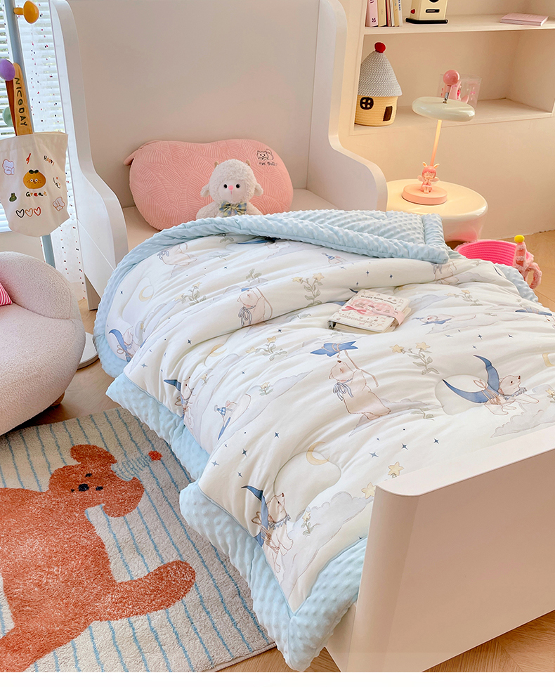 丝涟家居 2025新款A类双面针织棉卡通小清新滚绳工艺夏被乖乖兔,乖乖兔