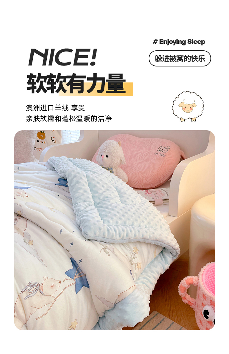 (总)丝涟家居 2025新款澳阳绒豆豆被系列,捕梦天鹅粉,睡梦花园,甜蜜森林,星际小熊,鸭鸭学堂,月影下的熊