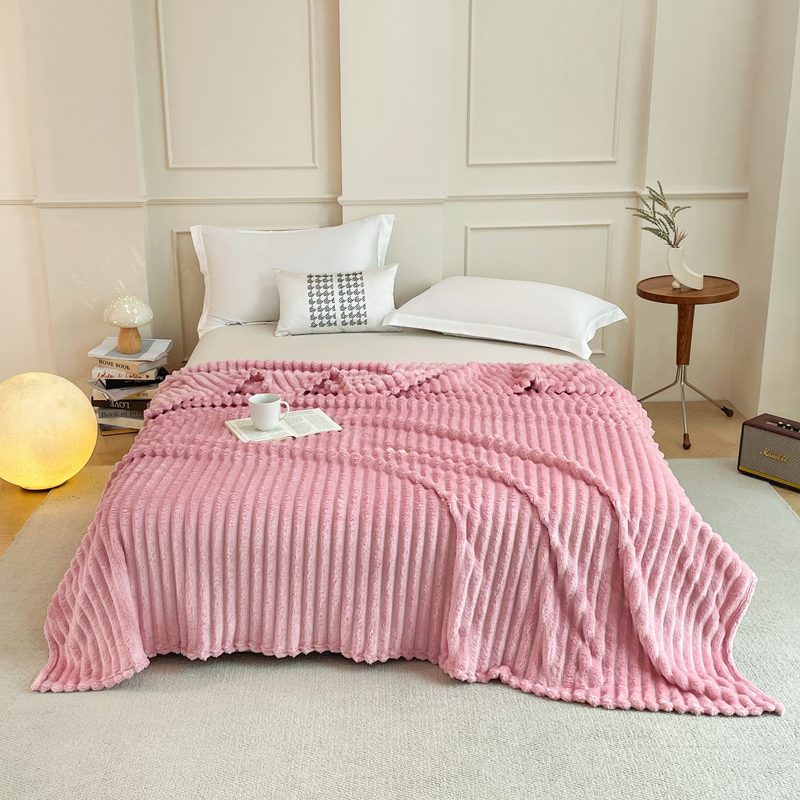 乐窝家纺仓储 2025新款跨境外贸直播热品兔毛绒高克重多功能抽条毛毯盖毯午睡毯 奶白