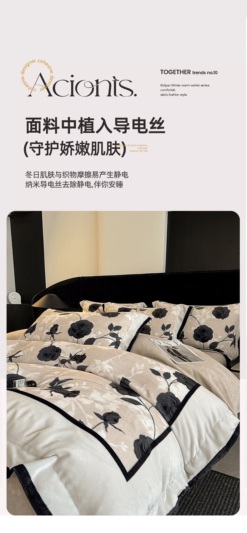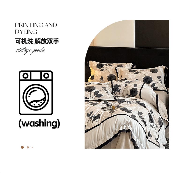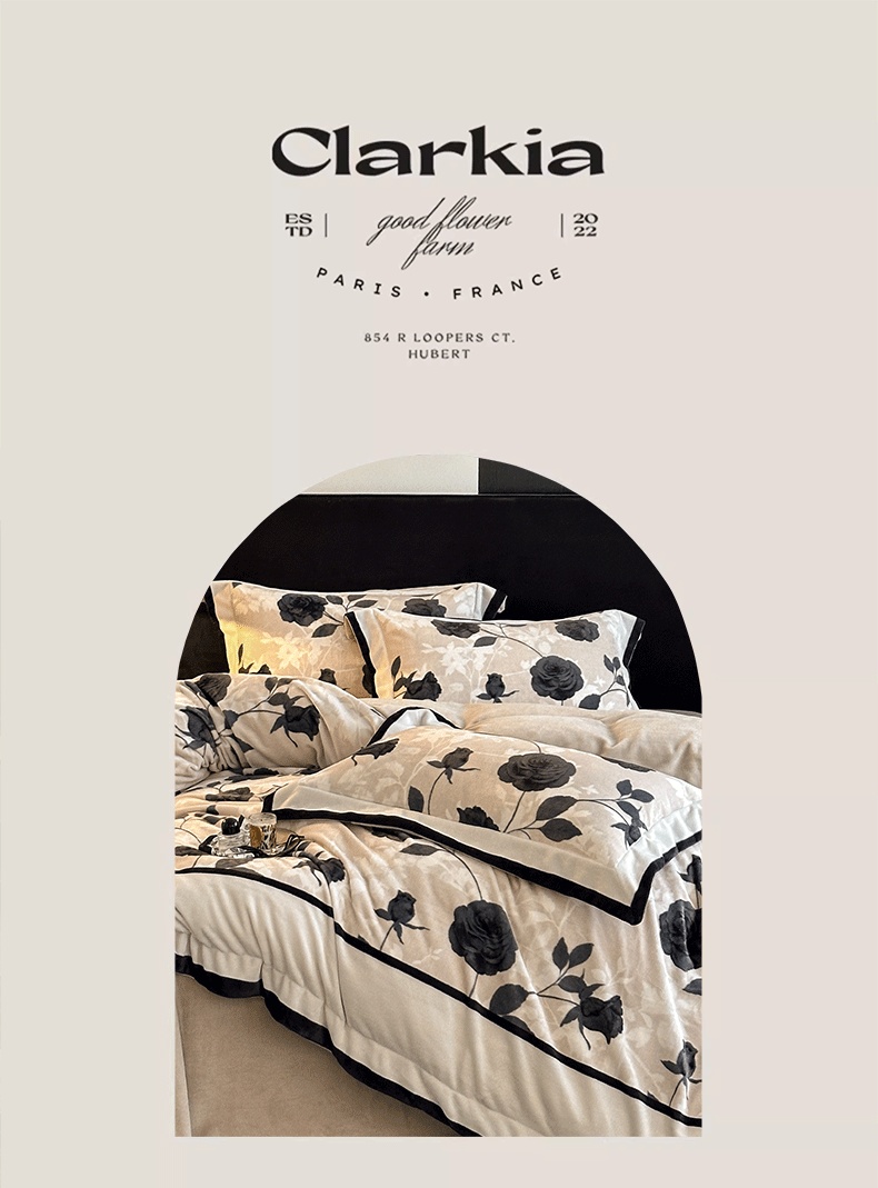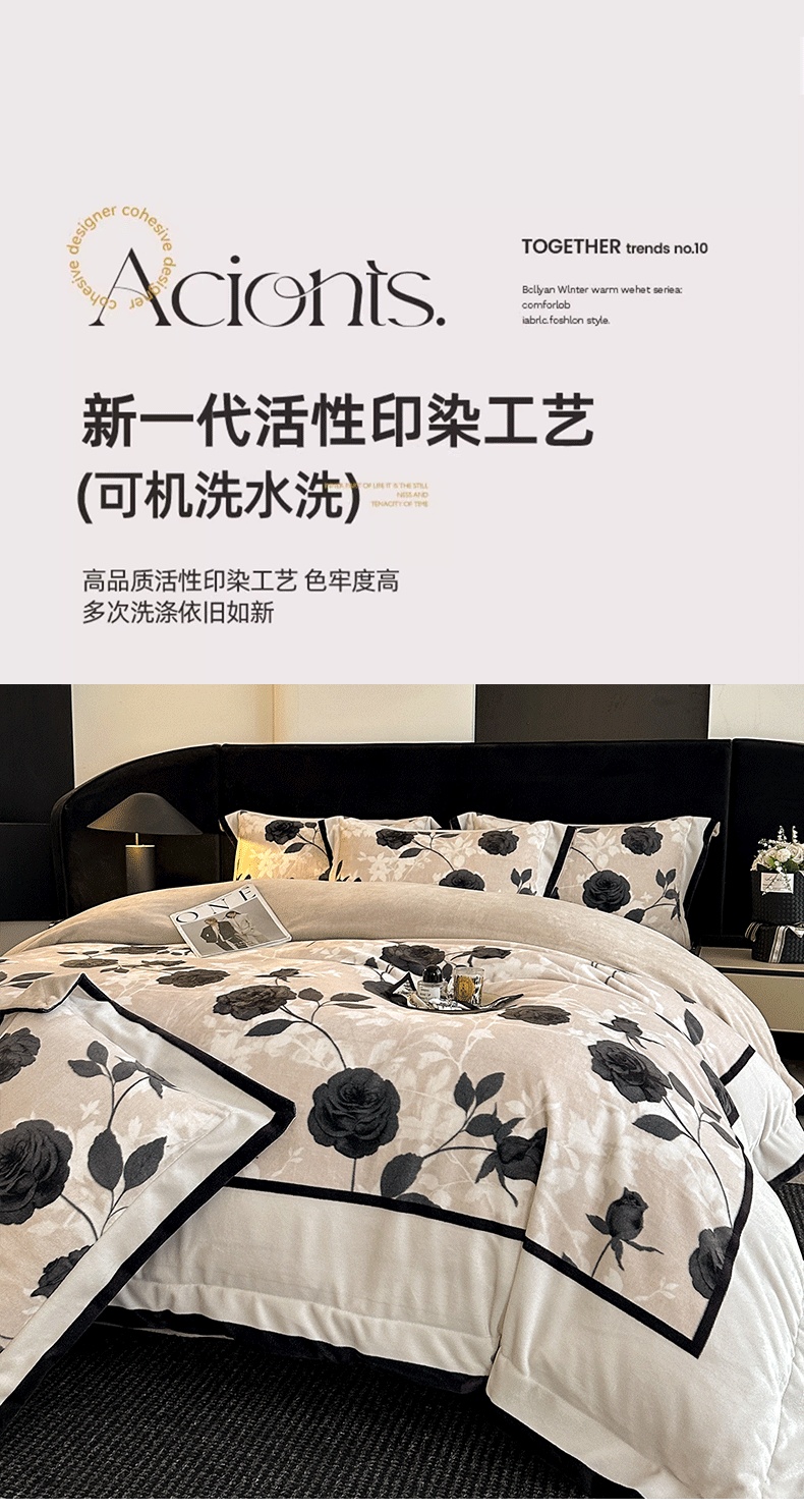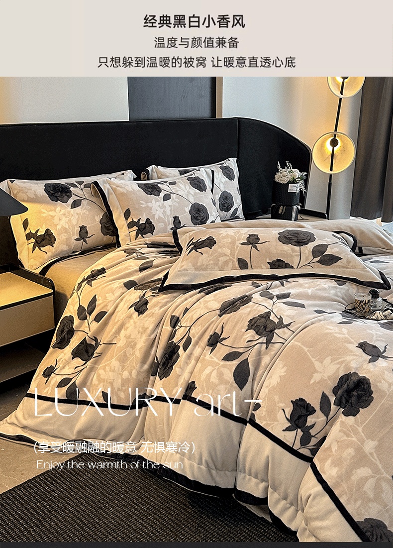 商品名称:花漾家居 2025新款秋冬新品法式轻奢复古宽边大版牛奶绒四件套(提供买家秀) 小香玫瑰
