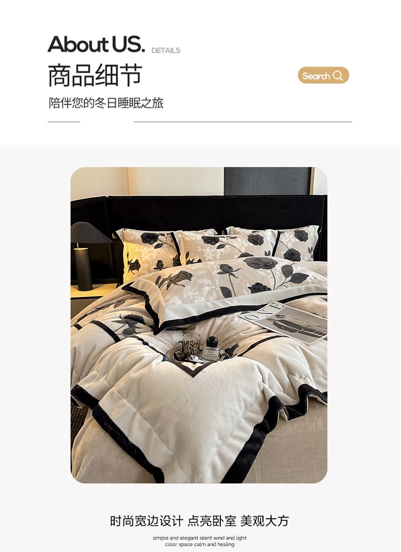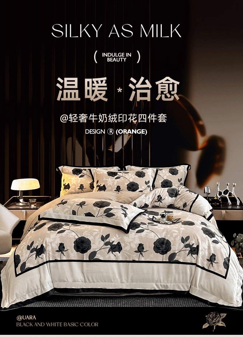 花漾家居 2024新款宽边牛奶绒四件套 秋日恋曲,秋日恋曲