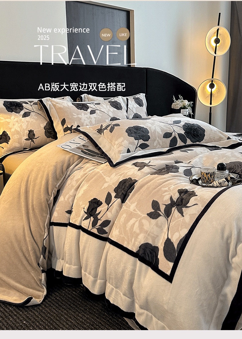 花漾家居 2025新款秋冬新品法式轻奢复古宽边大版牛奶绒四件套(提供买家秀) 小香玫瑰