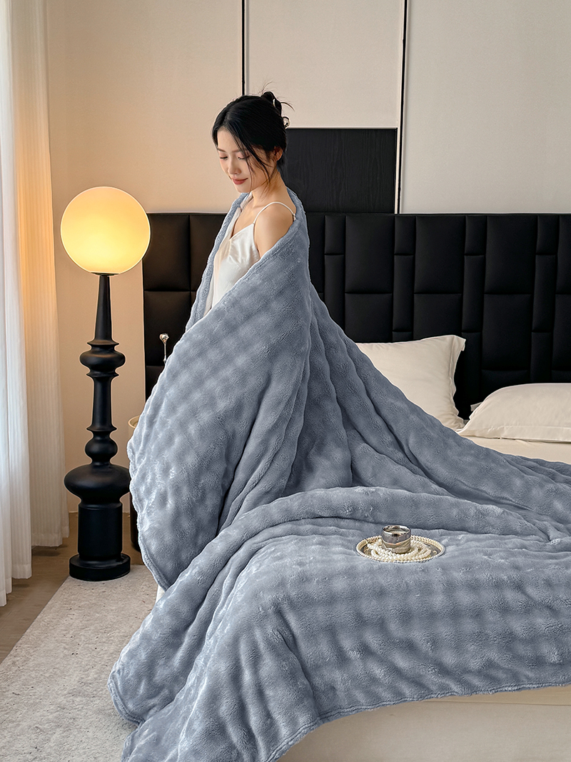 乐窝家纺仓储 2025新款简约纯色泡泡毛毯毯子 泡泡纯色-紫色