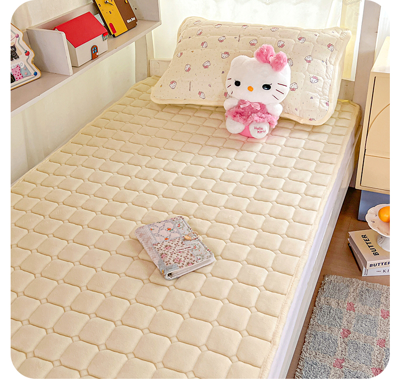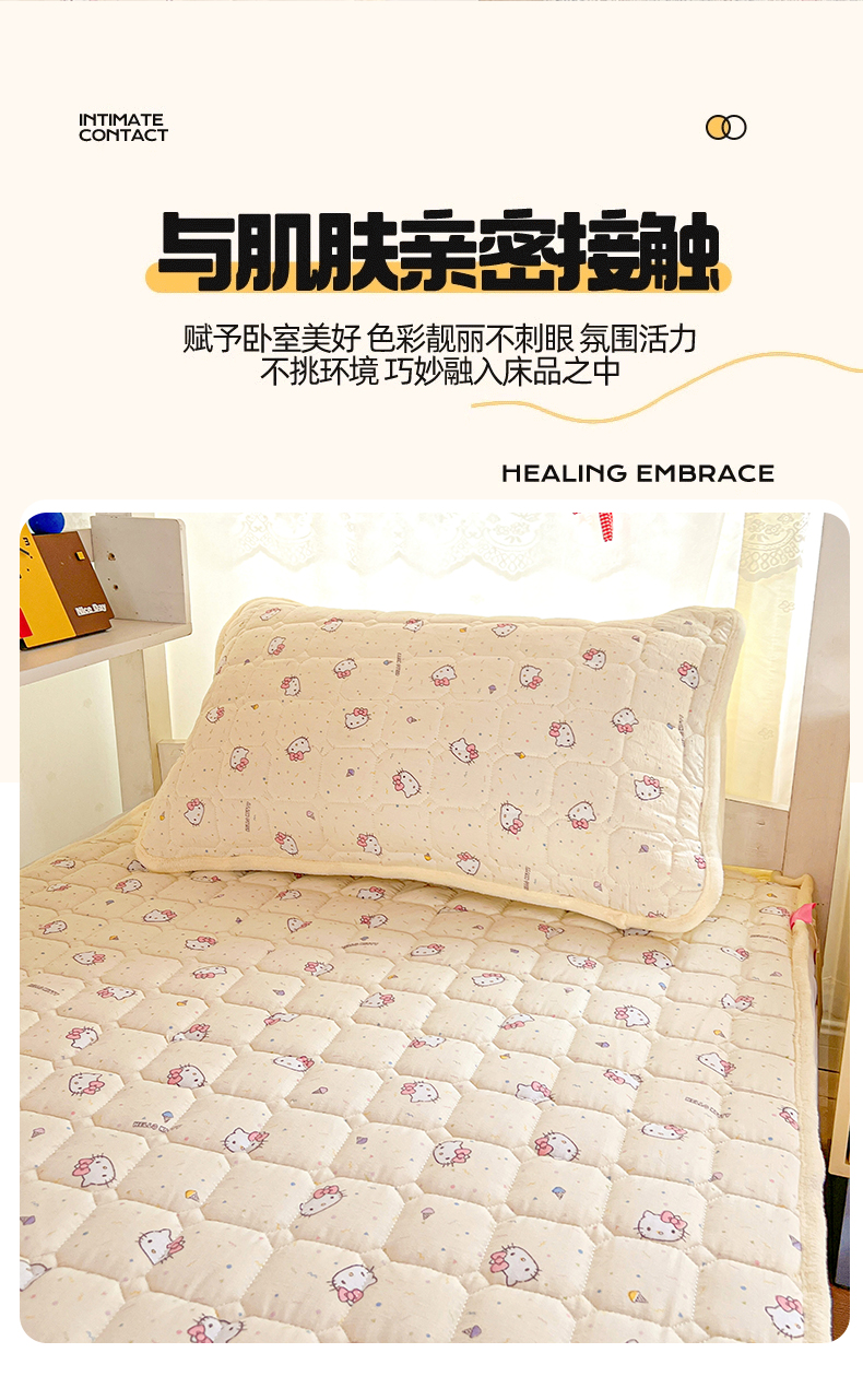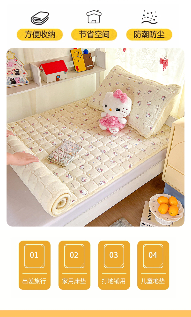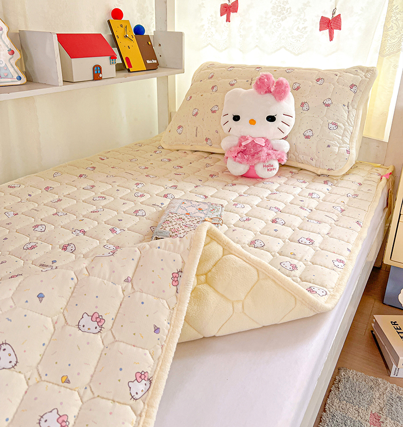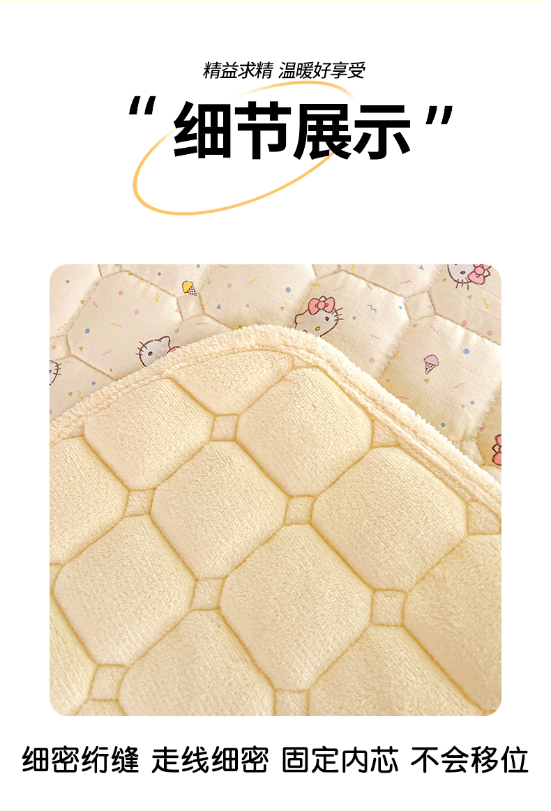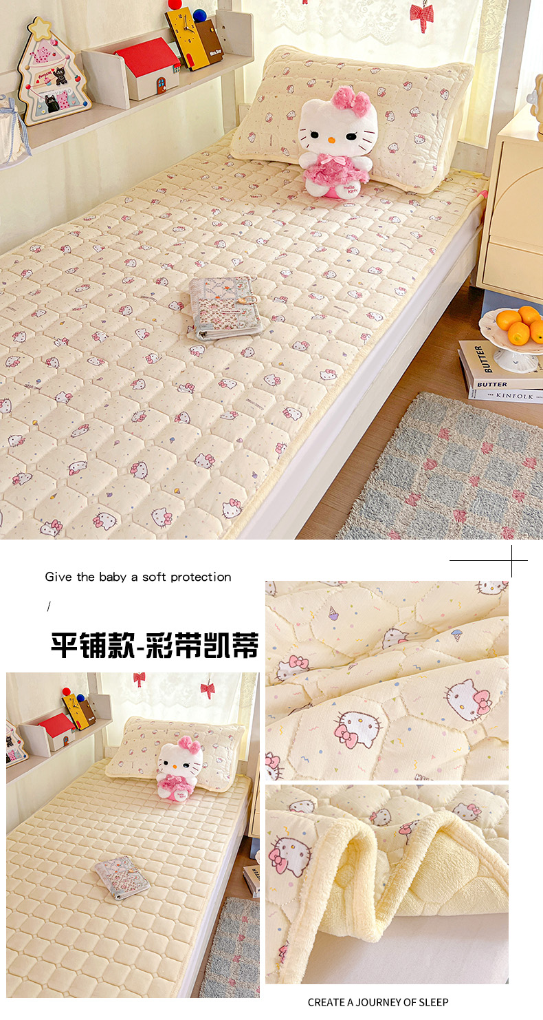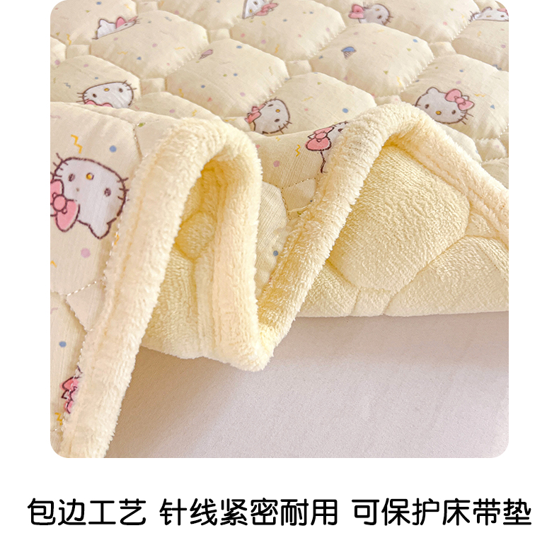 商品名称:星禾优选 2025新款三丽鸥云感双层纱牛奶绒夹棉床垫平铺款 平铺款-彩带凯蒂