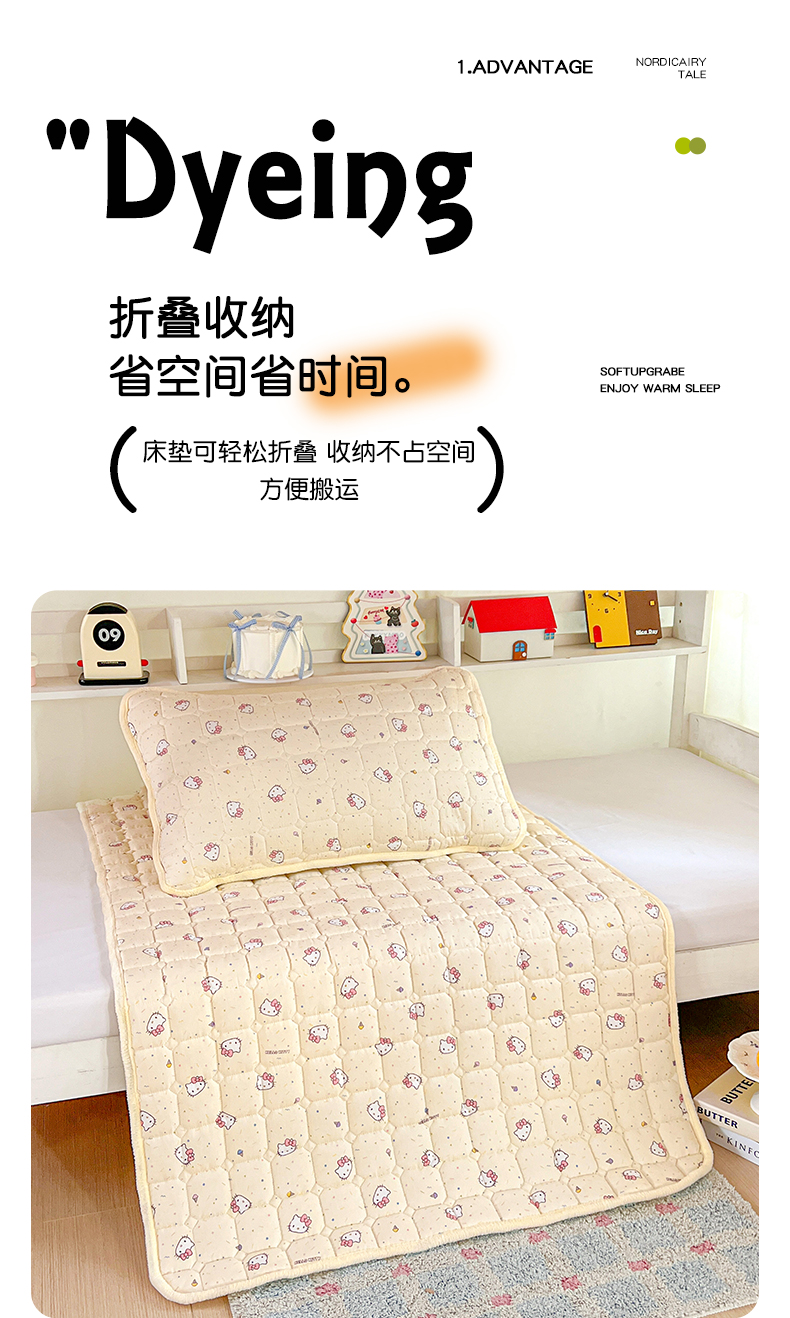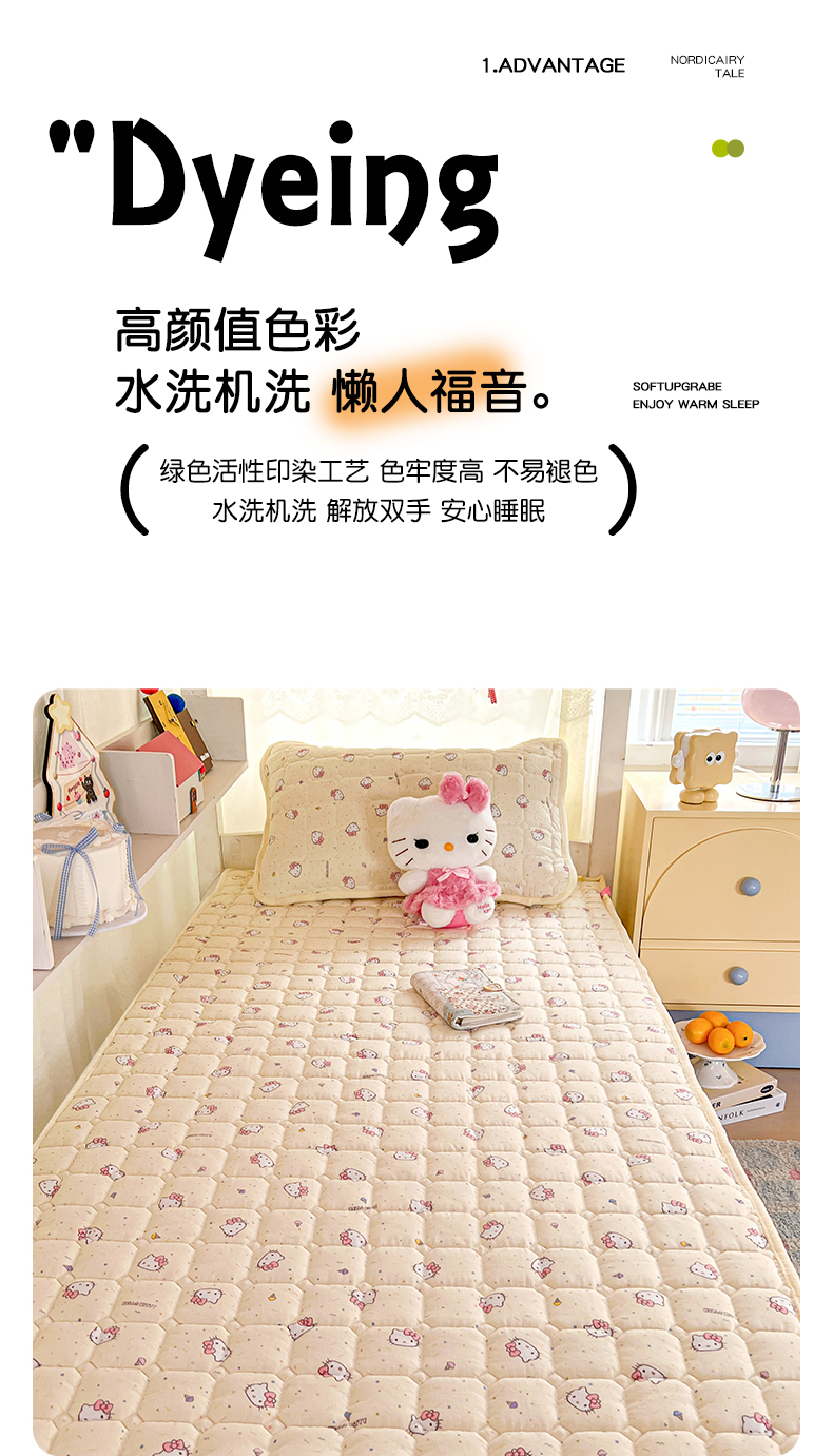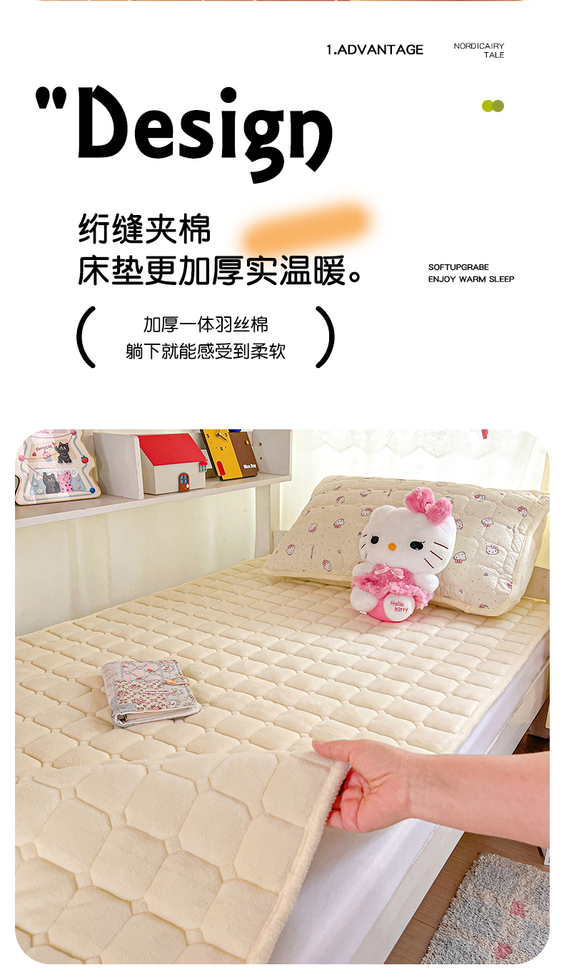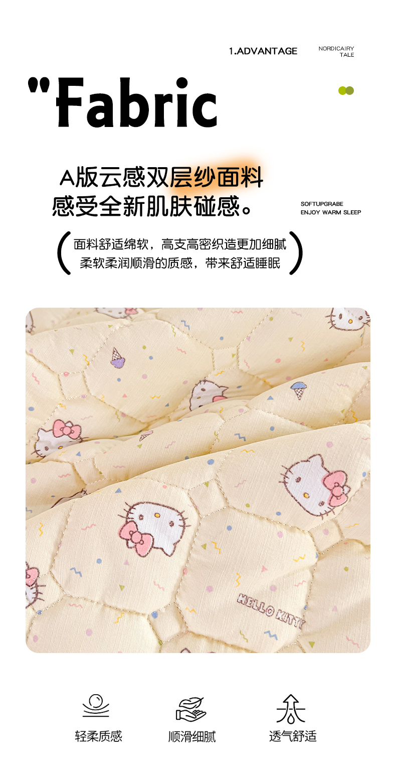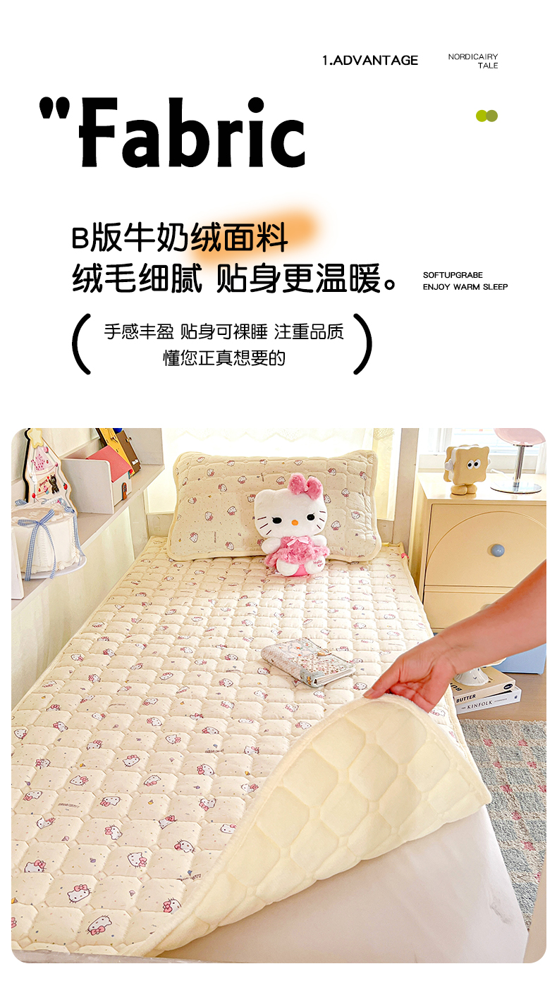 商品名称:星禾优选 2025新款三丽鸥云感双层纱牛奶绒夹棉床垫平铺款 平铺款-彩带凯蒂