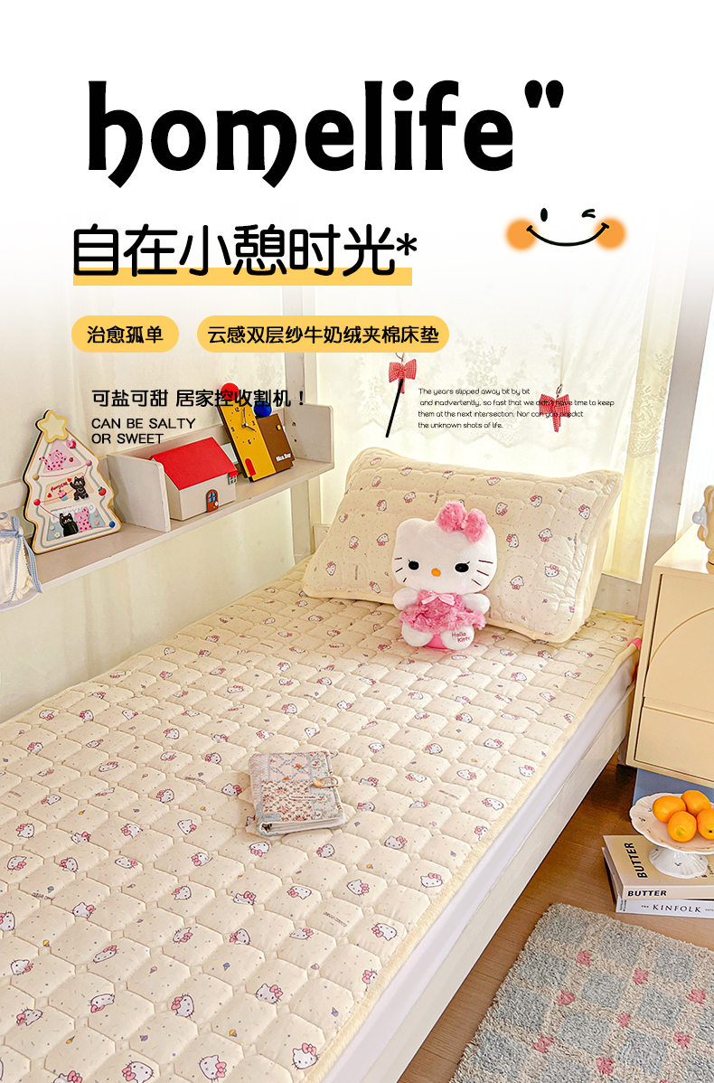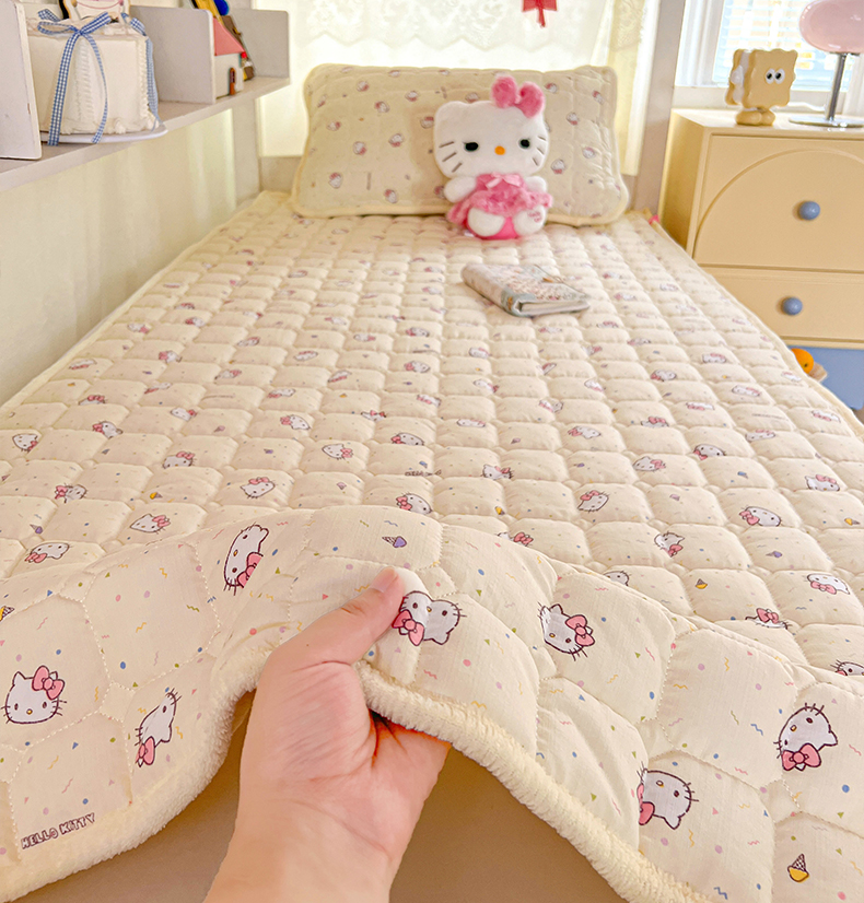 星禾优选 2025新款三丽鸥云感双层纱牛奶绒夹棉床垫平铺款 平铺款-彩带凯蒂