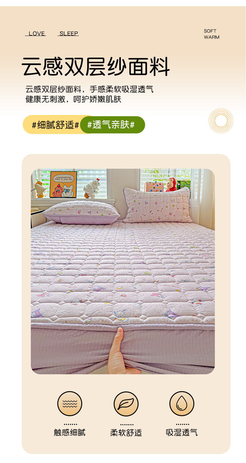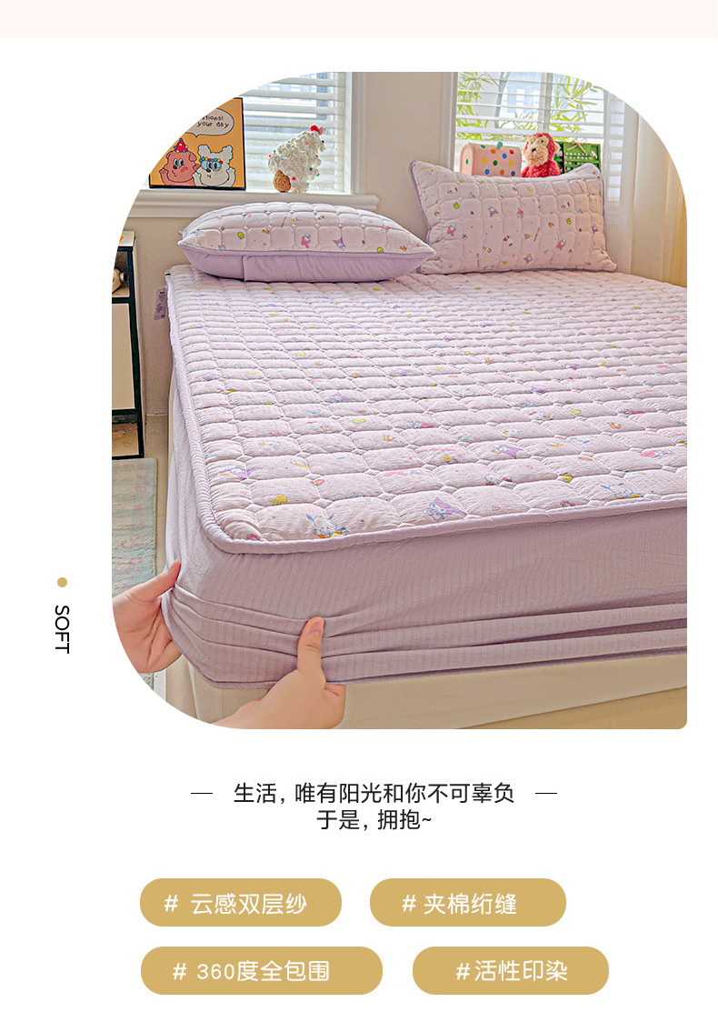 星禾优选 2025新款三丽鸥云感双层纱夹棉床笠系列-大床款 床笠款-丽鸥星球