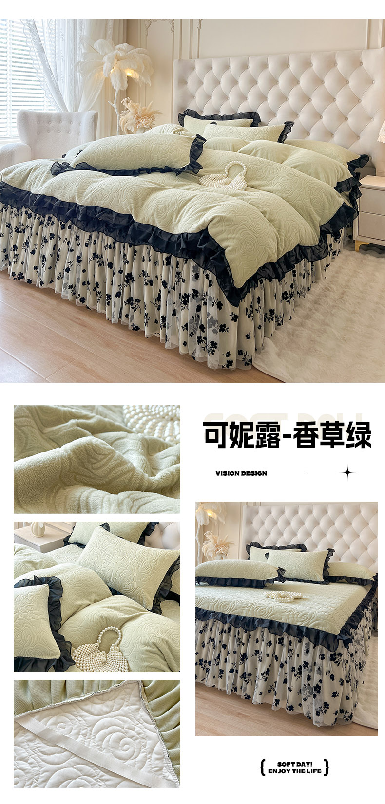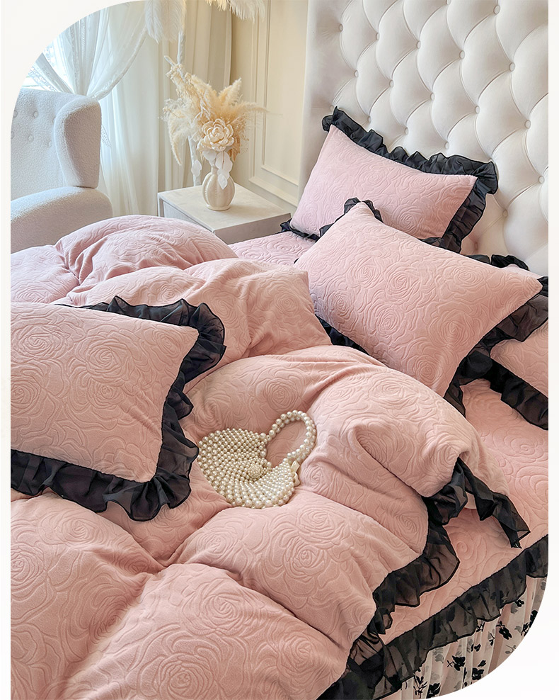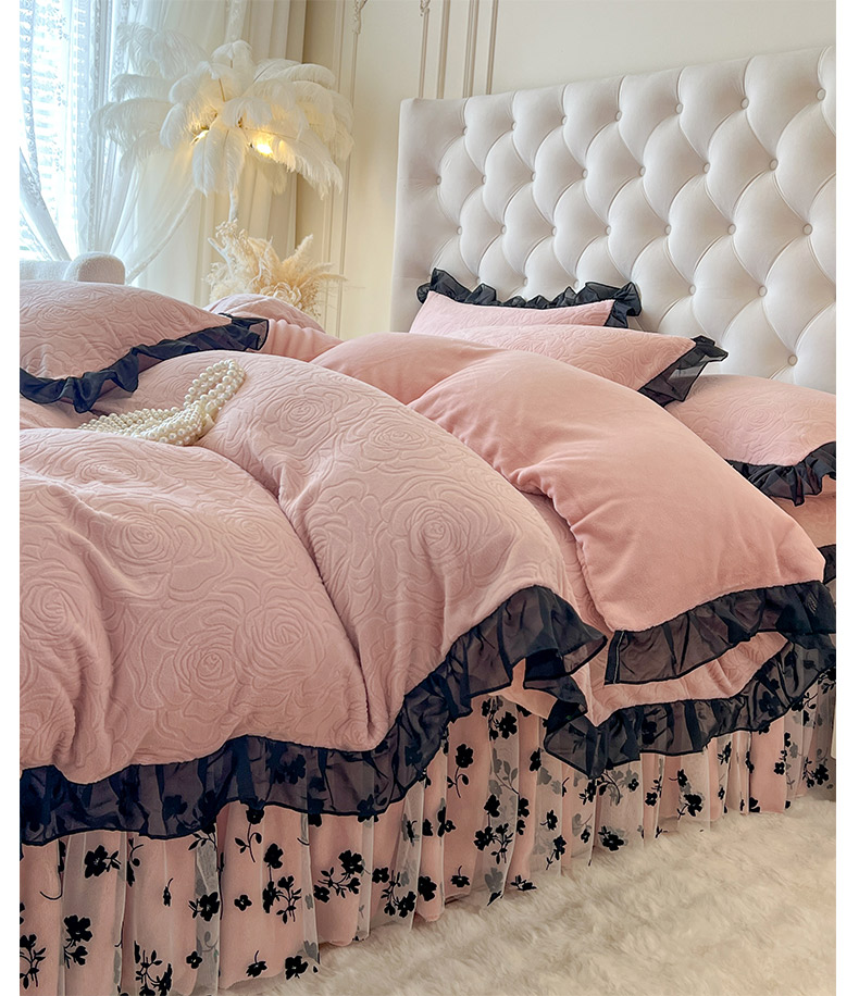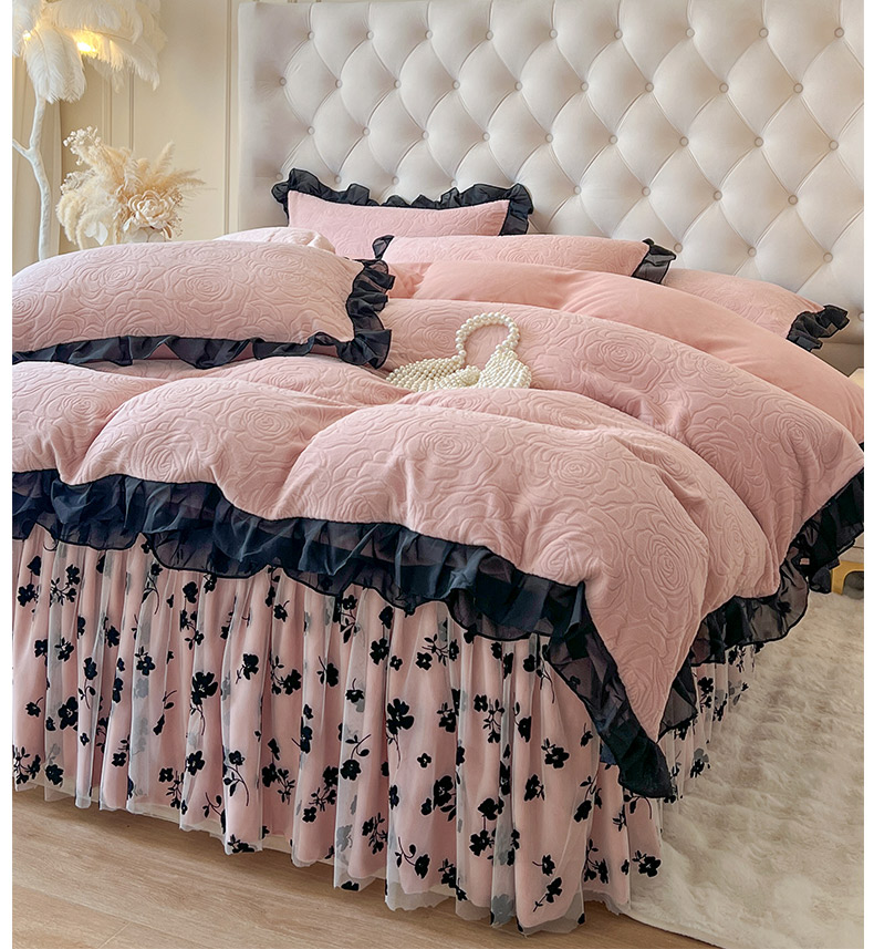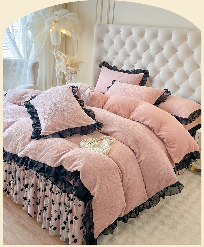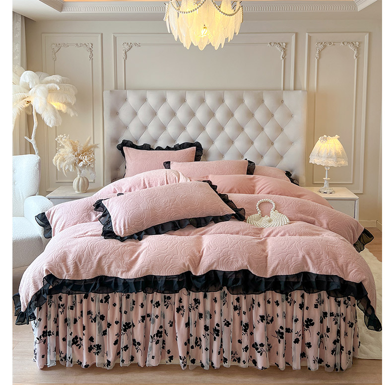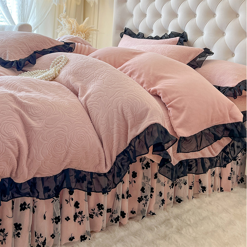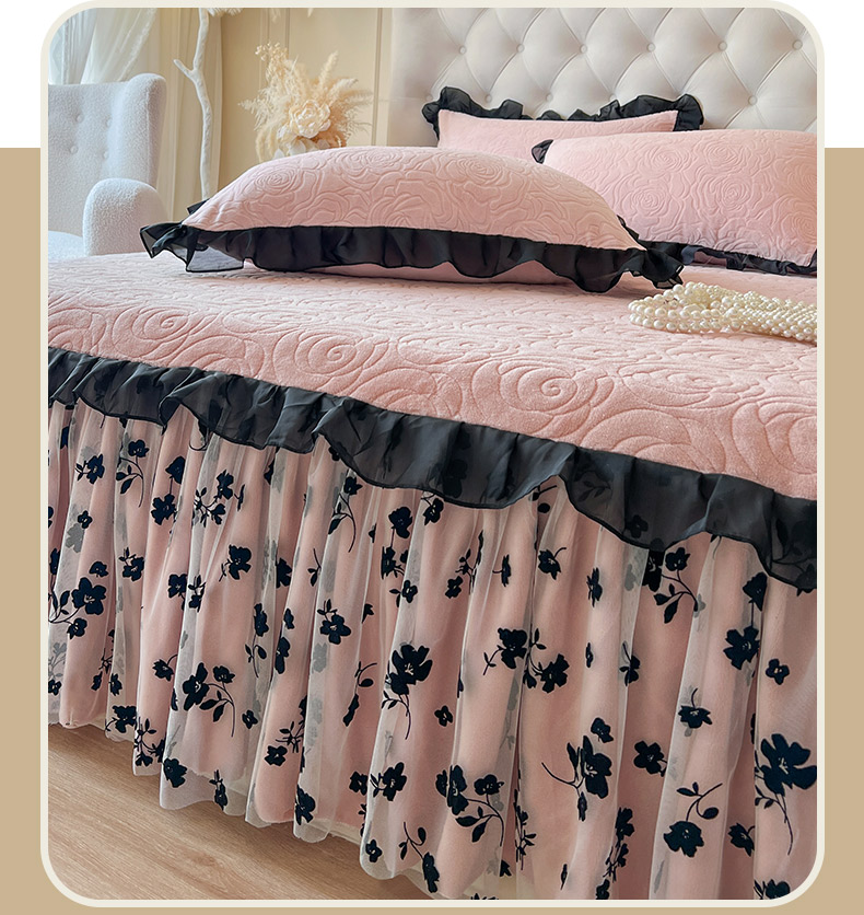 当前位置: 91家纺网 > 商品网购 > 床品套件 > 四件套 > 牛奶绒四件套 > 恋尚 2025新款牛奶绒可妮露系列床裙四件套(控价285起) 可妮露-蜜桃粉