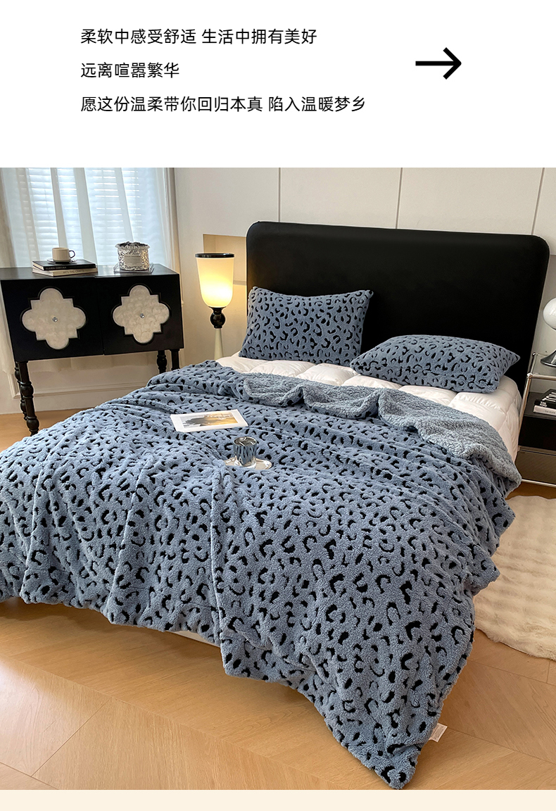 商品名称:楼兰公主毛毯专供 2025爆款阳离子豹纹双层单层羊羔绒跨境绒毯 豹纹-深蓝