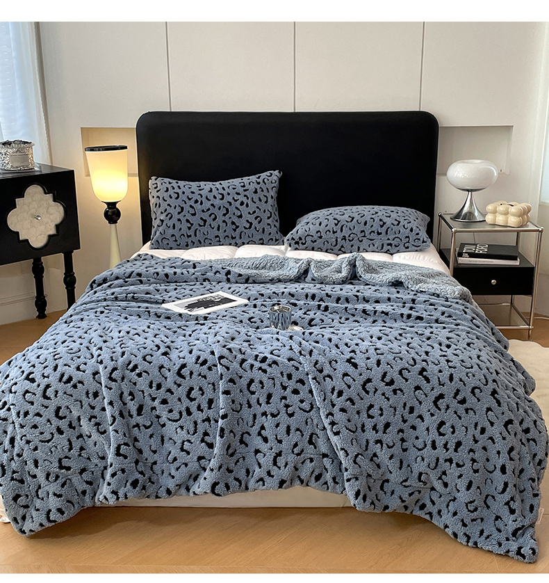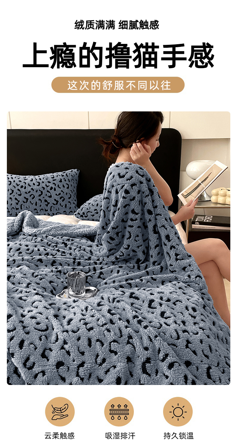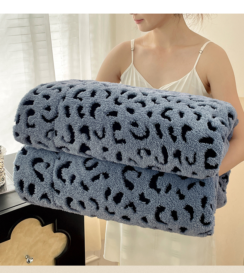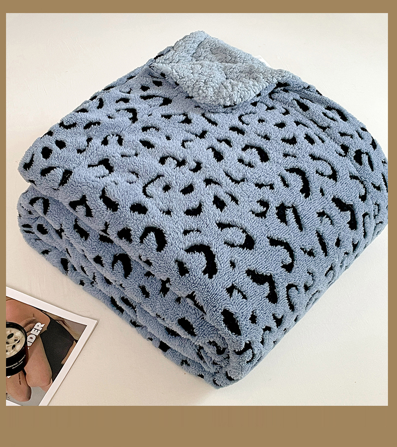 楼兰公主毛毯专供 2025爆款阳离子豹纹双层单层羊羔绒跨境绒毯 豹纹-深蓝