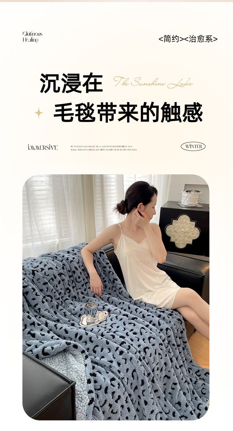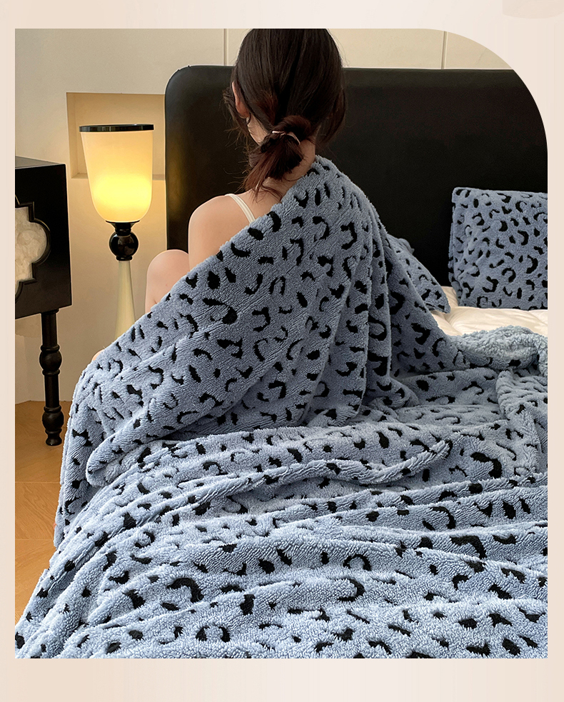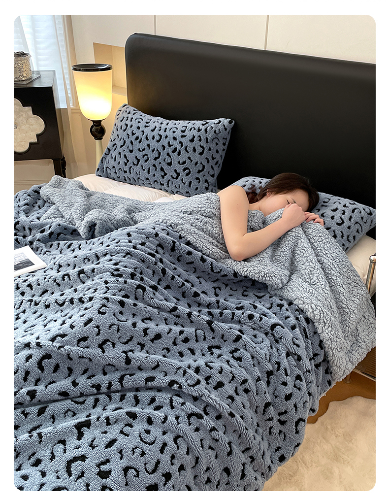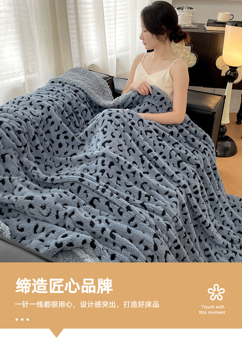 楼兰公主毛毯专供 2025爆款阳离子豹纹双层单层羊羔绒跨境绒毯 豹纹-深蓝