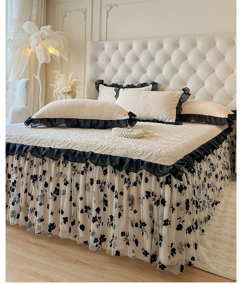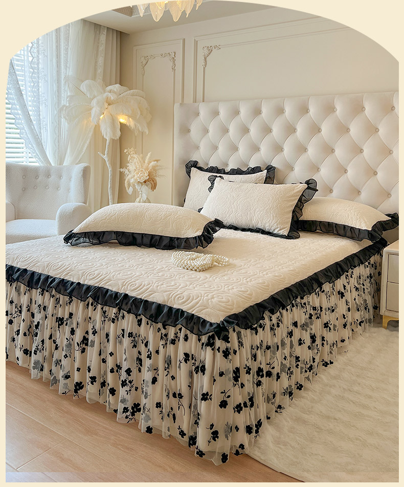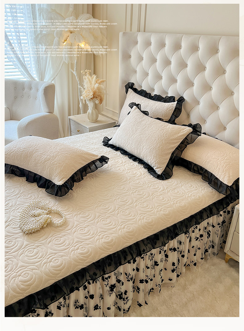 • 91家纺网 家纺一手货源 找家纺 恋尚 2025新款牛奶绒可妮露系列单品床裙三件套(控价150起) 可妮露-奶油白