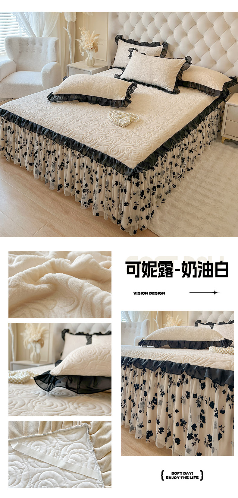 恋尚 2025新款牛奶绒可妮露系列单品床裙三件套(控价150起) 可妮露-奶油白