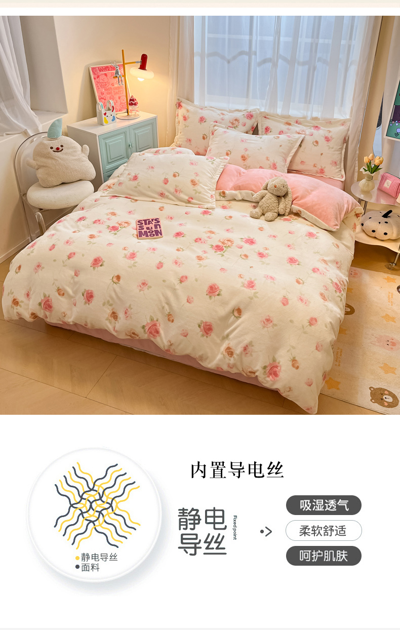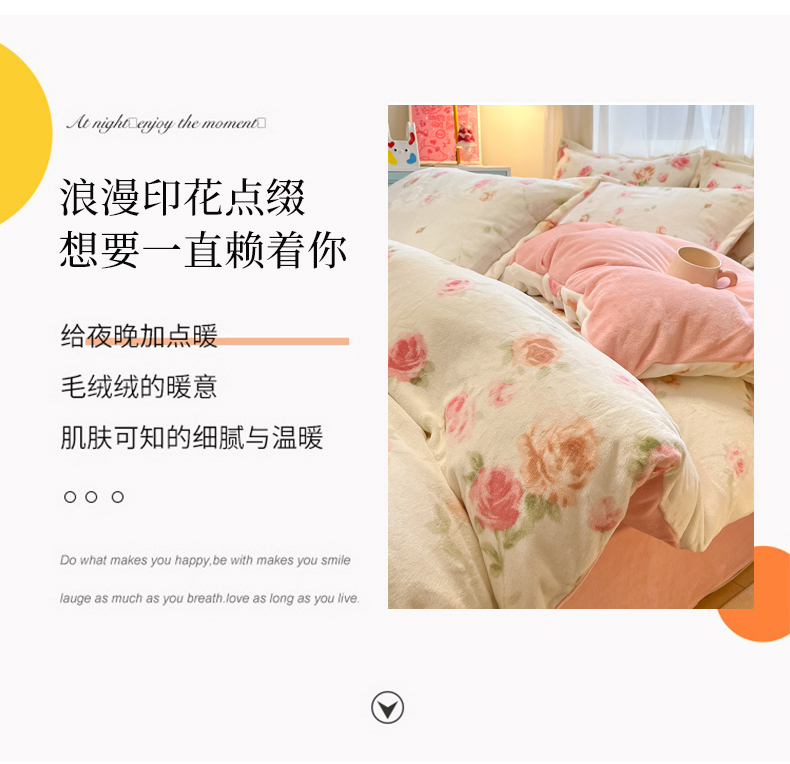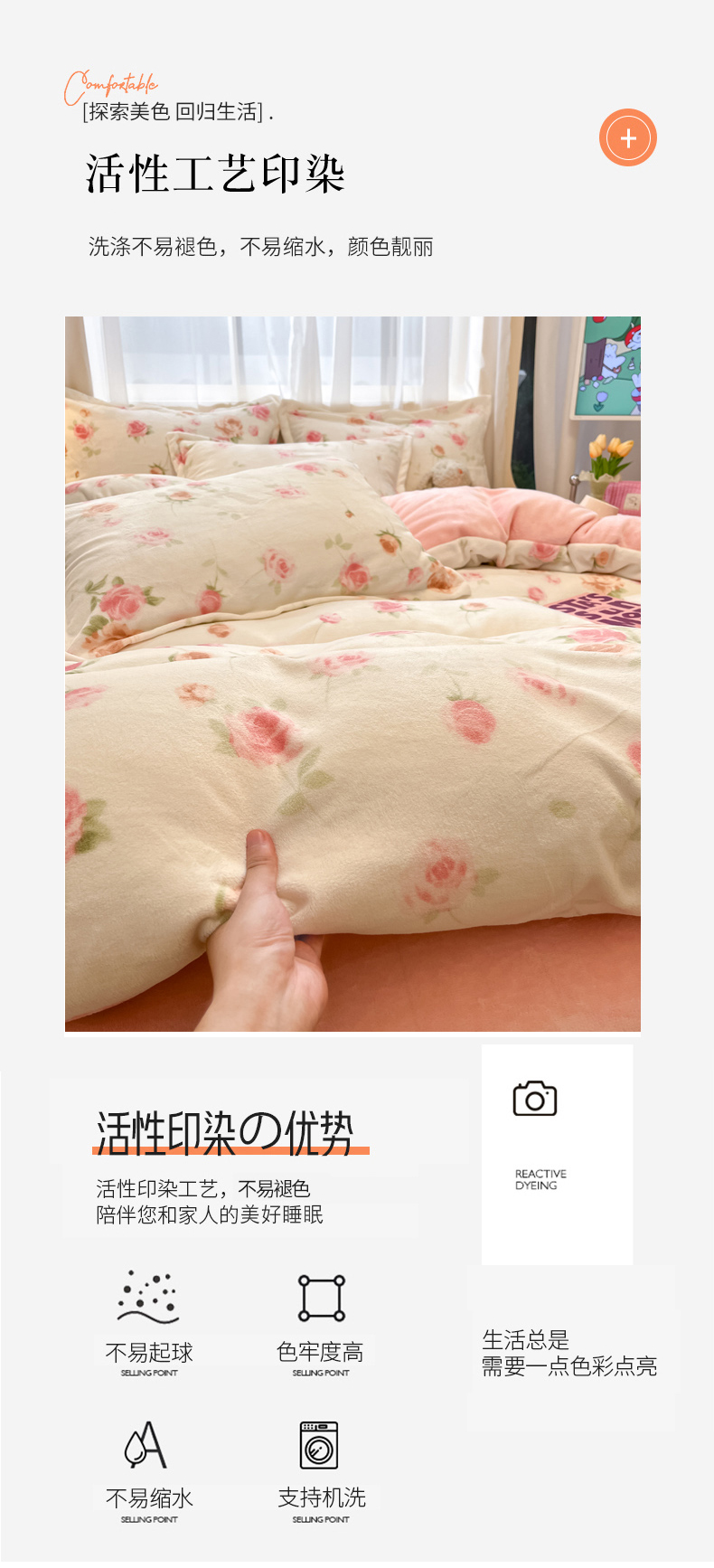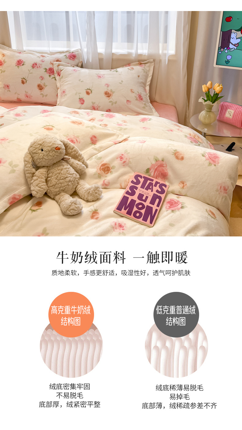 商品名称:慕尚家纺 2025新款田园花卉类印花牛奶绒高克重单被套 甜美冬日