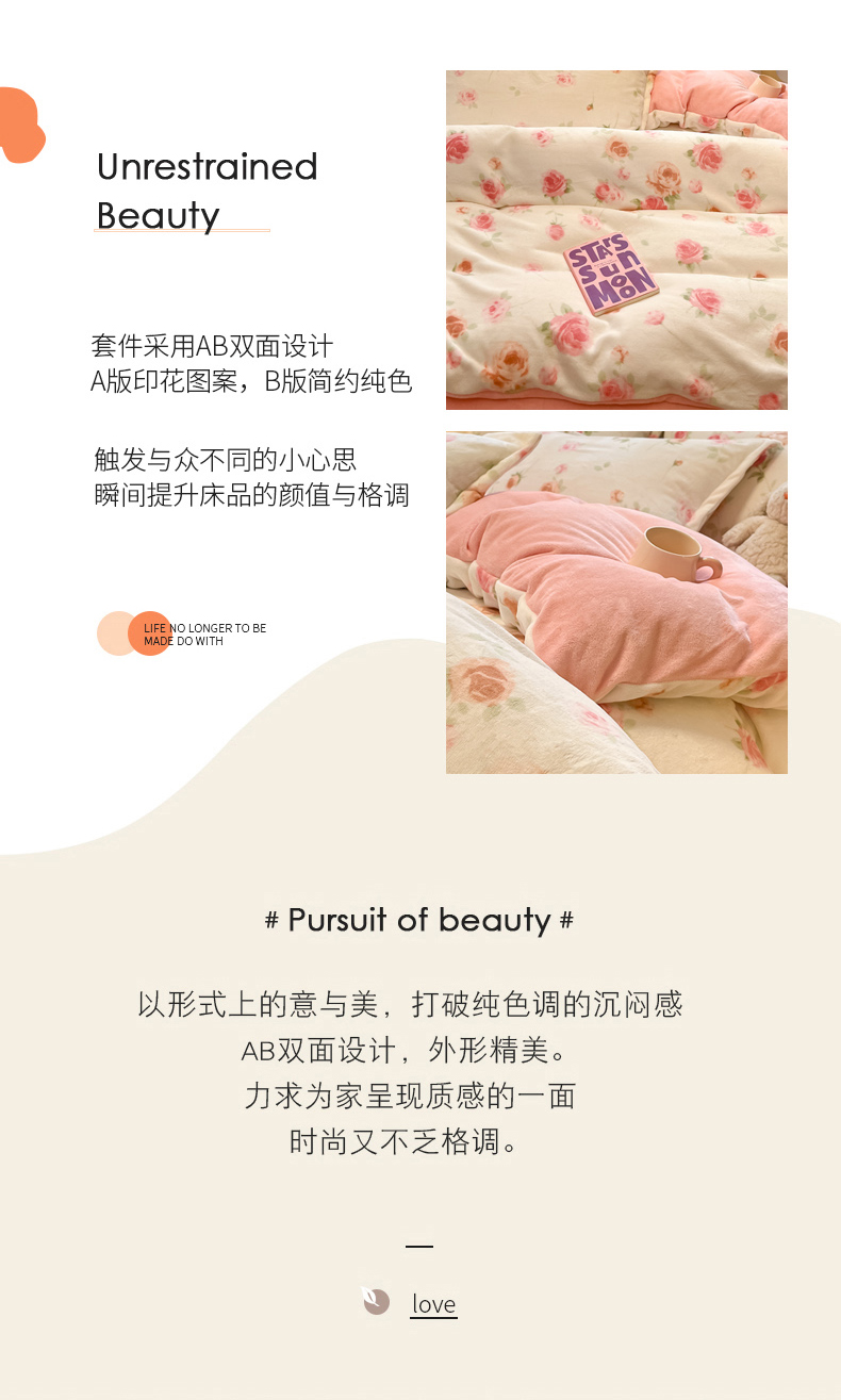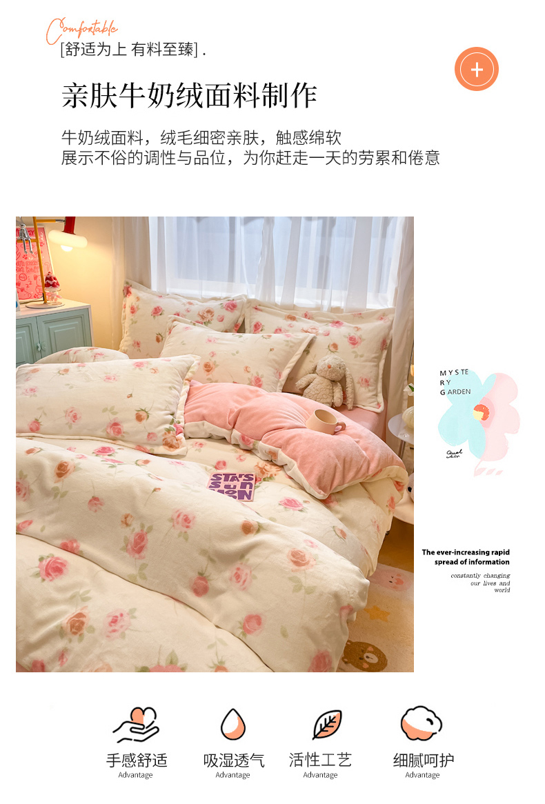 慕尚家纺 2025新款田园花卉类印花牛奶绒高克重单被套 甜美冬日