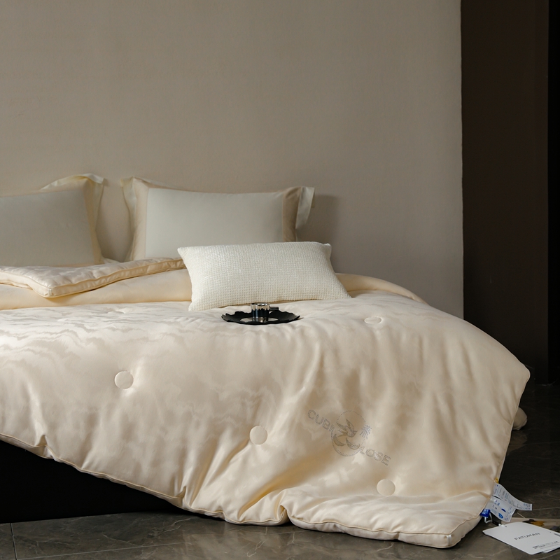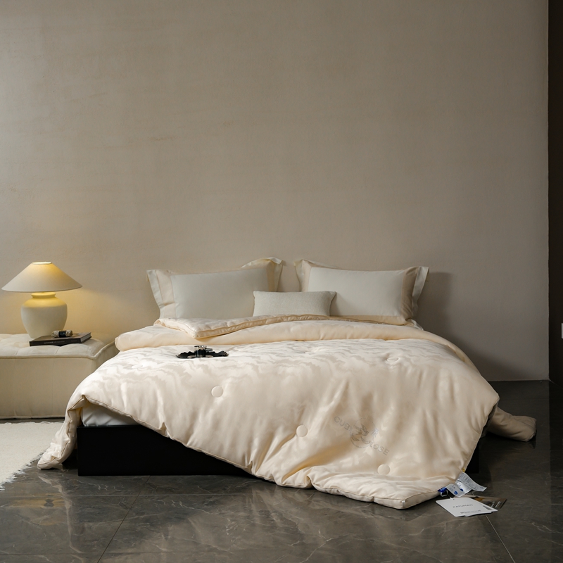 (总)丽卡家纺 2025新款柏林蚕丝花边子母被被子被芯,柏林蚕丝花边子母被-米金色,柏林蚕丝花边子母被-香槟色
