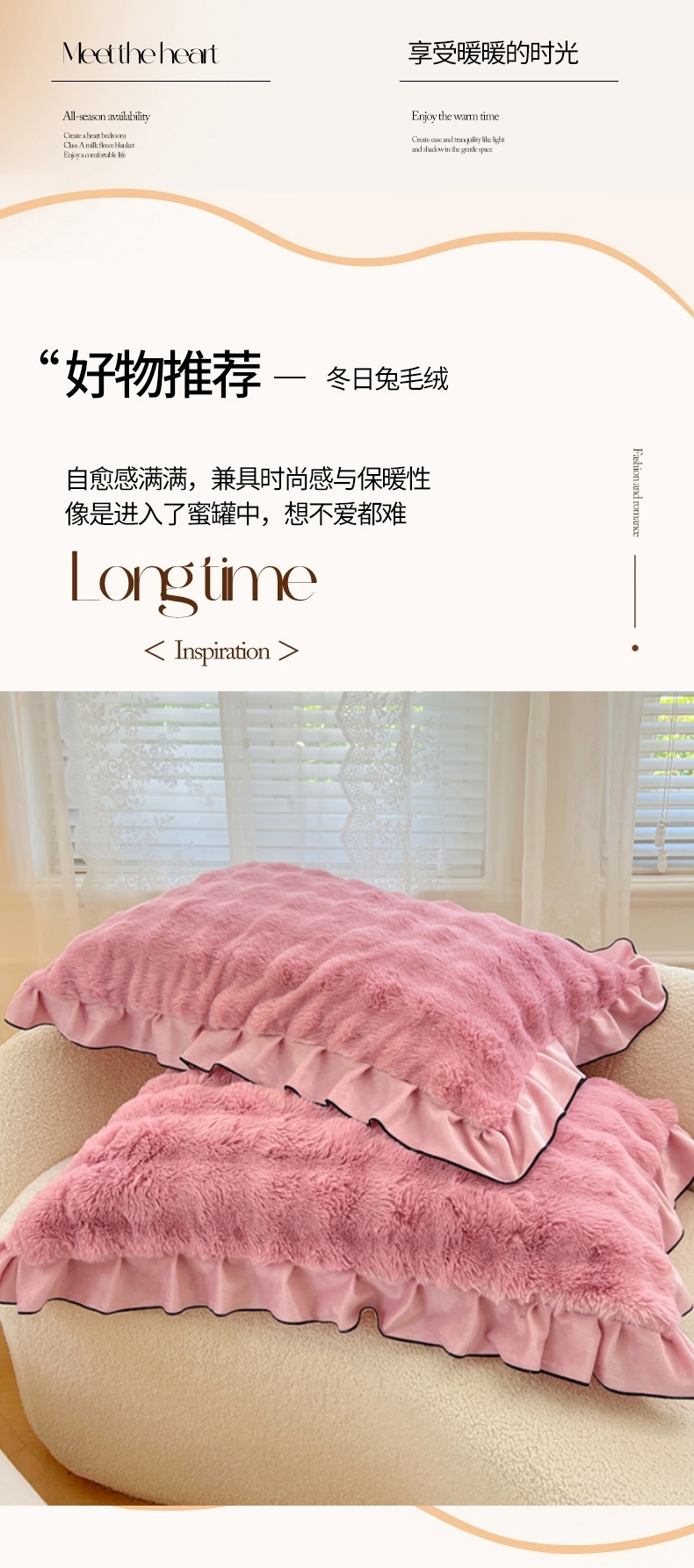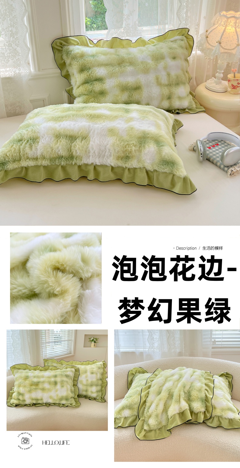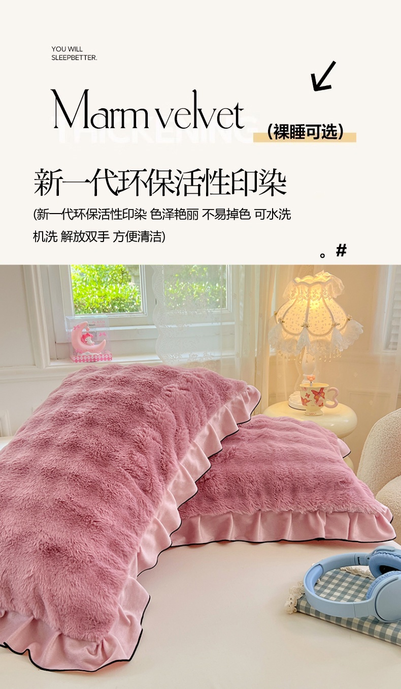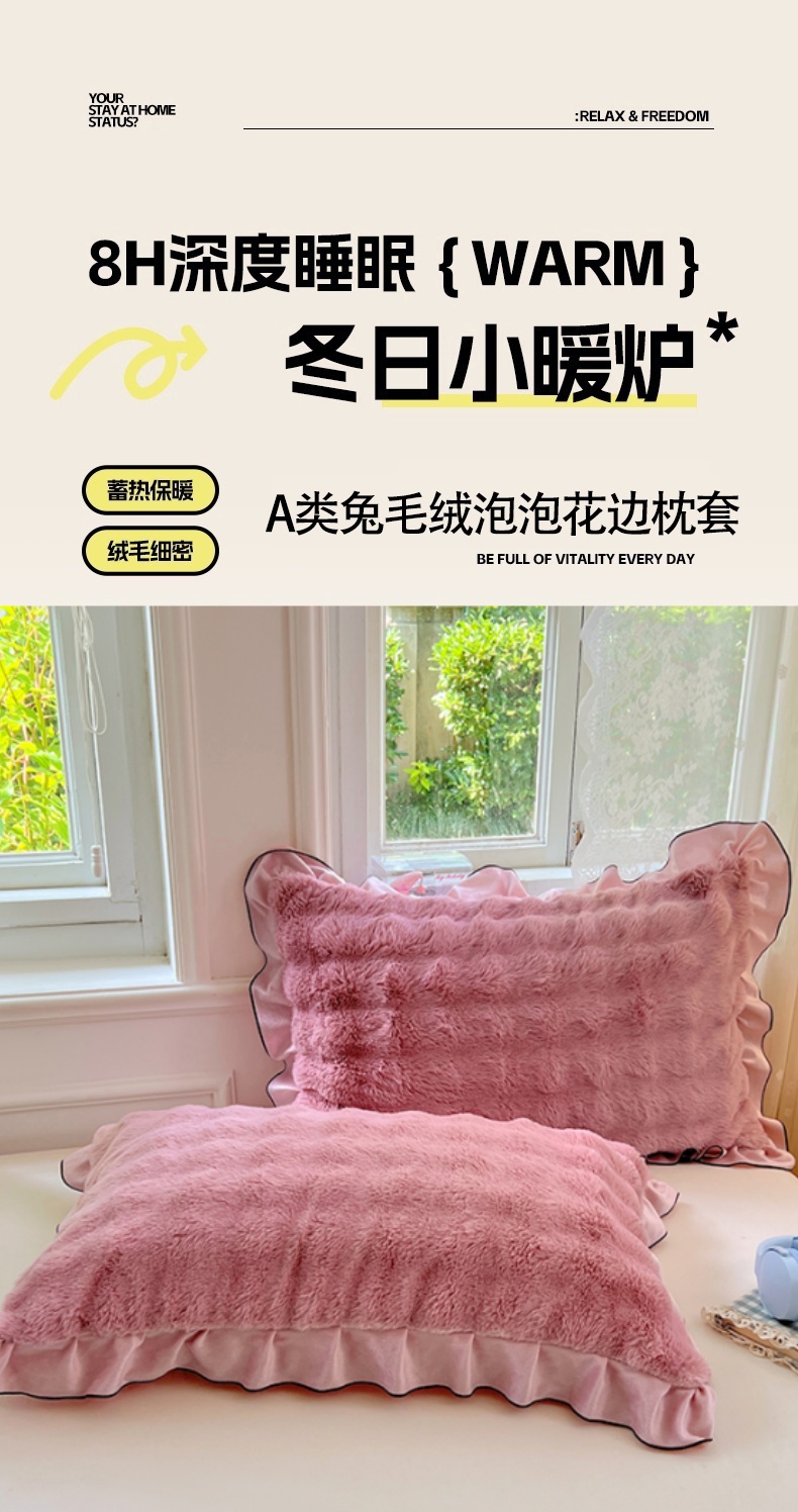 • 91家纺网 家纺一手货源 找家纺 梦舒羽 2025新款兔毛绒单人枕套牛奶绒枕芯套雪花绒宿舍枕头套-泡泡 兔毛绒泡泡花边款-云梦粉