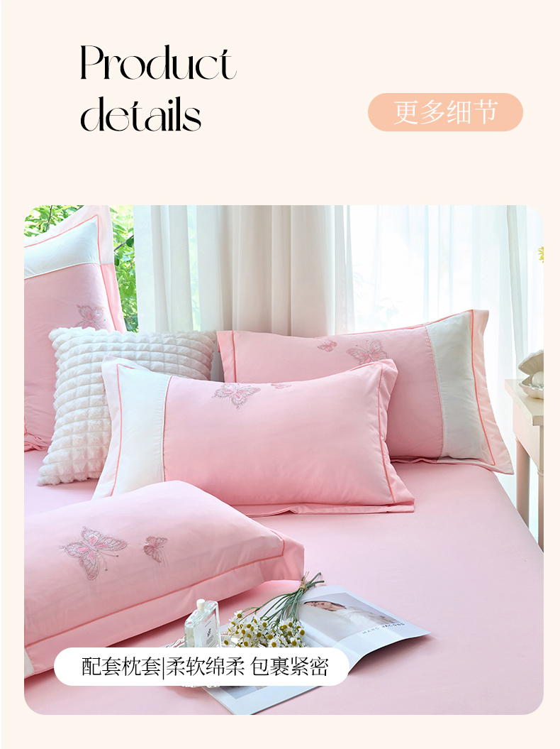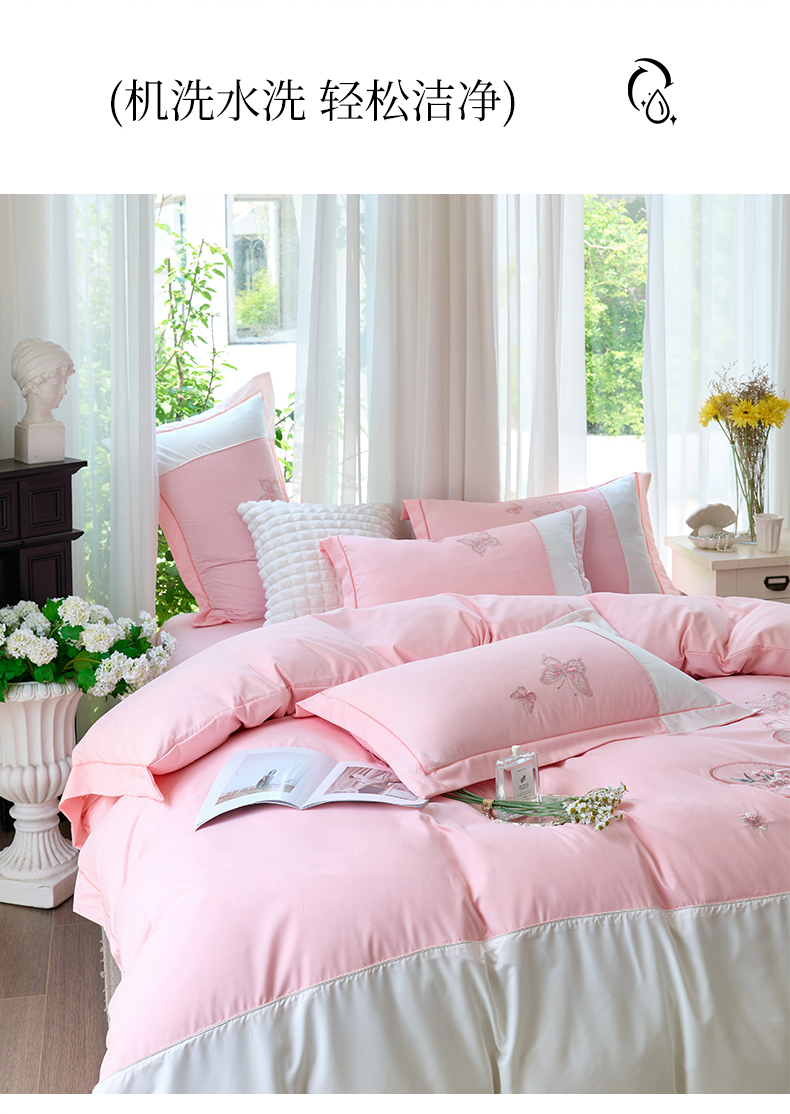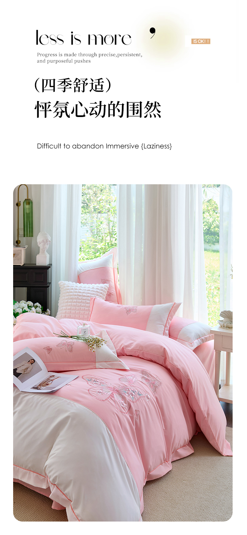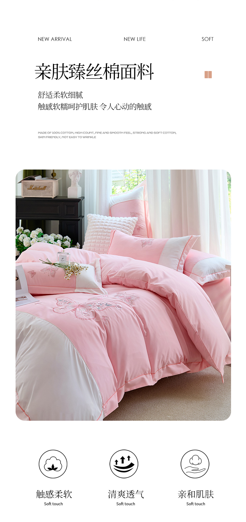 商品名称:包小包 2025新款臻丝棉拼角刺绣工艺四件套-羽栖 羽栖-浅粉