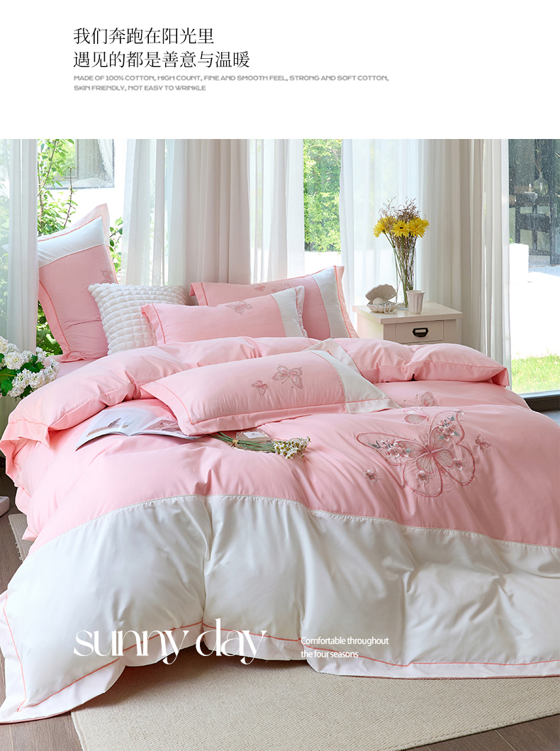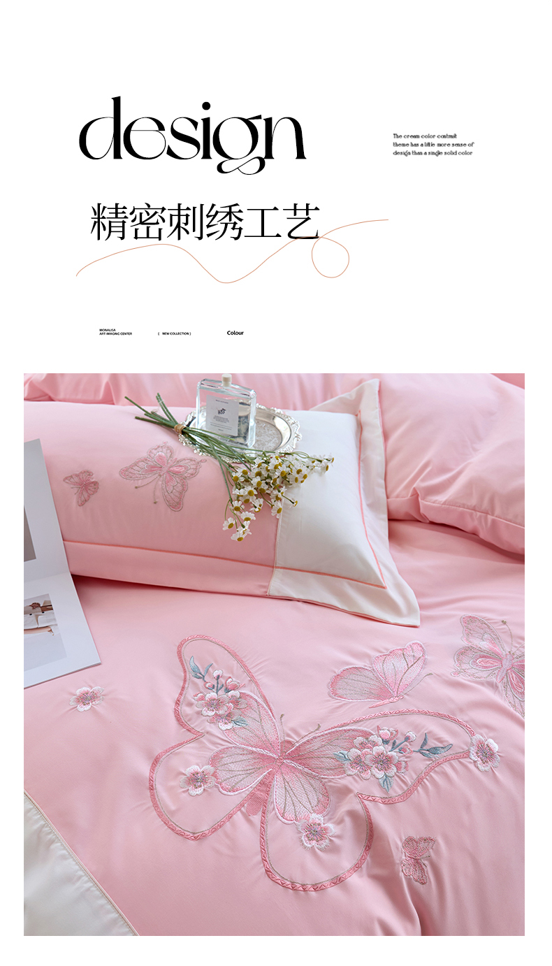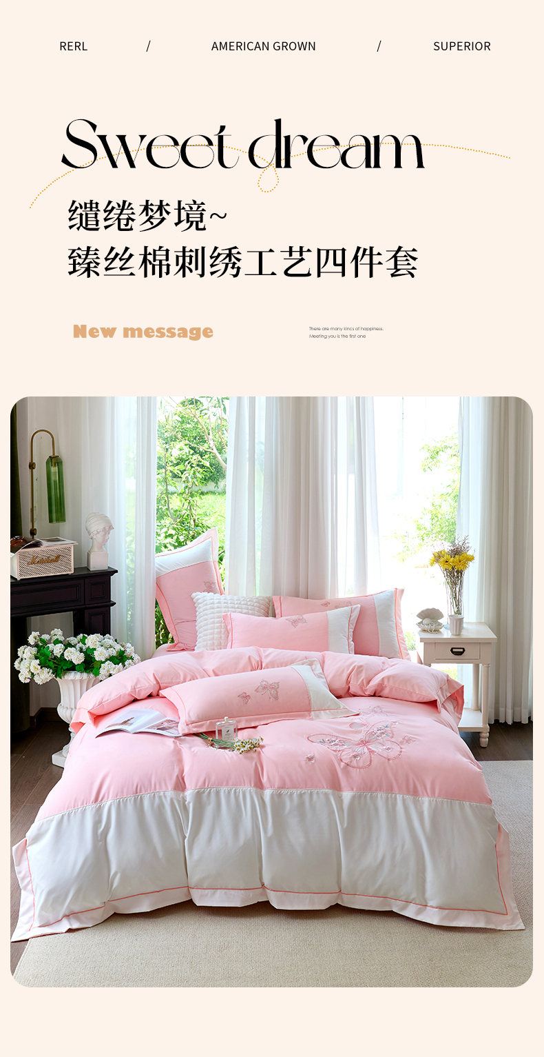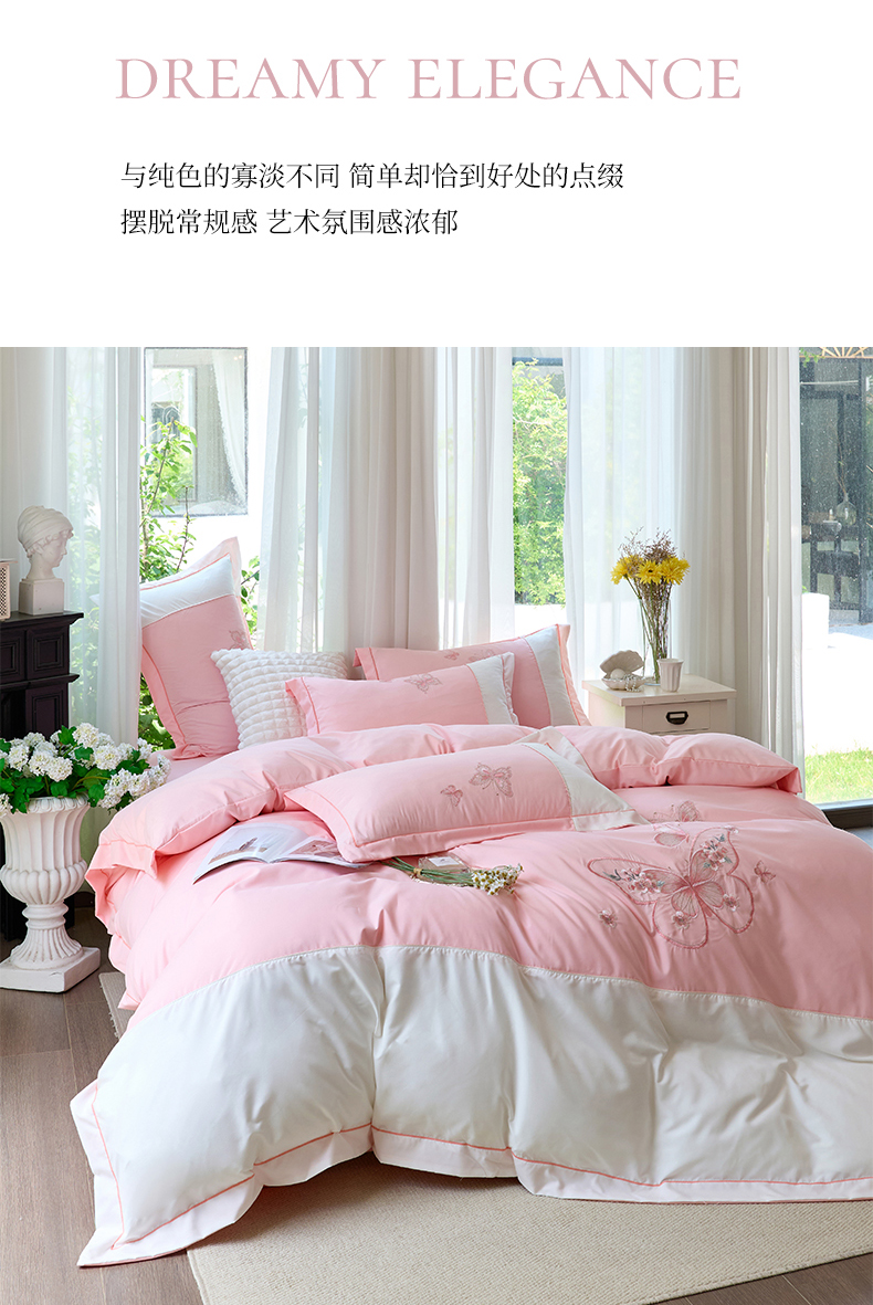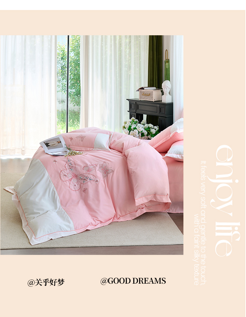 商品名称:包小包 2025新款臻丝棉拼角刺绣工艺四件套-羽栖 羽栖-浅粉