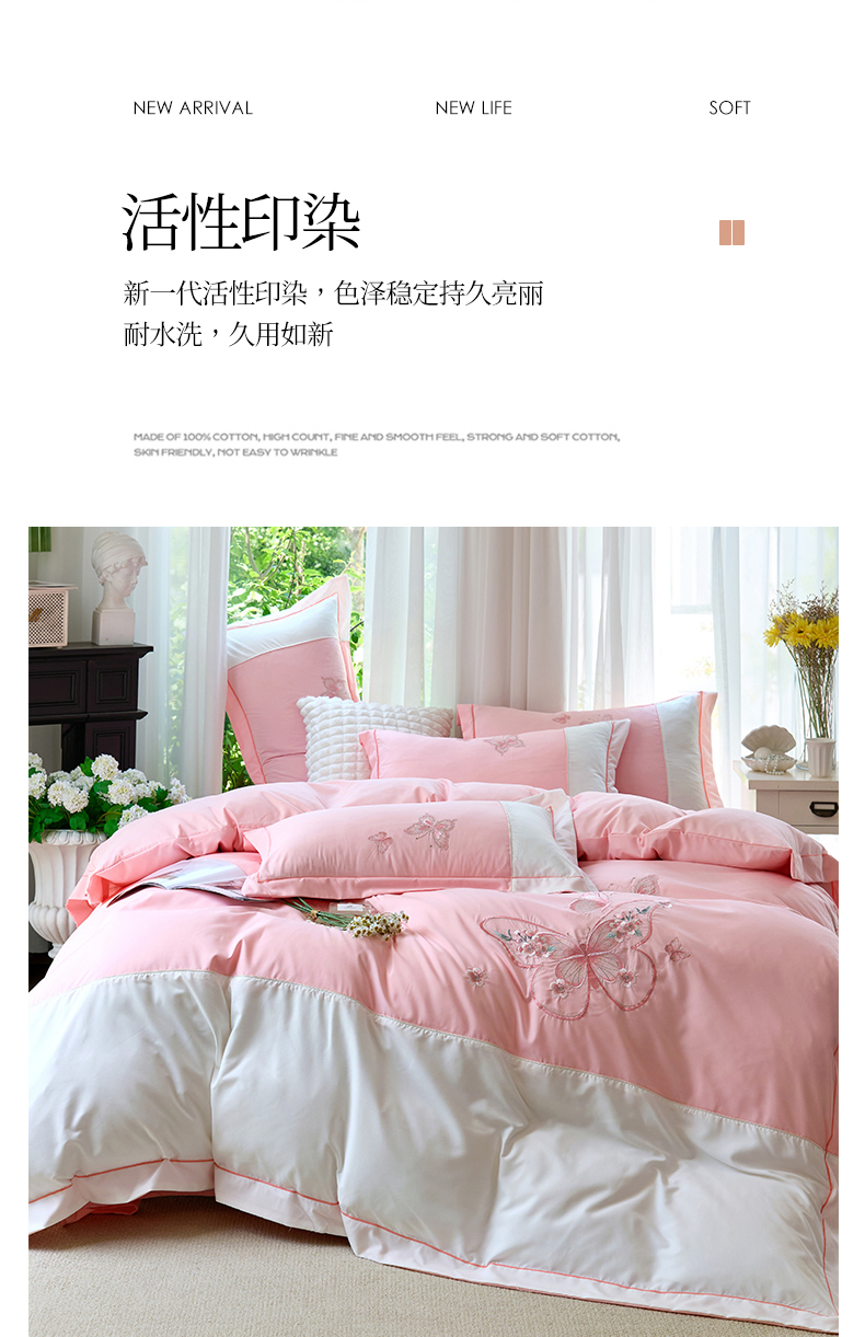 (总)包小包 2024春夏新款韩版蝶舞系列臻丝棉四件套,粉白双拼,晴空蓝,芝芝桃桃,甜杏粉,清新桔,梦幻紫