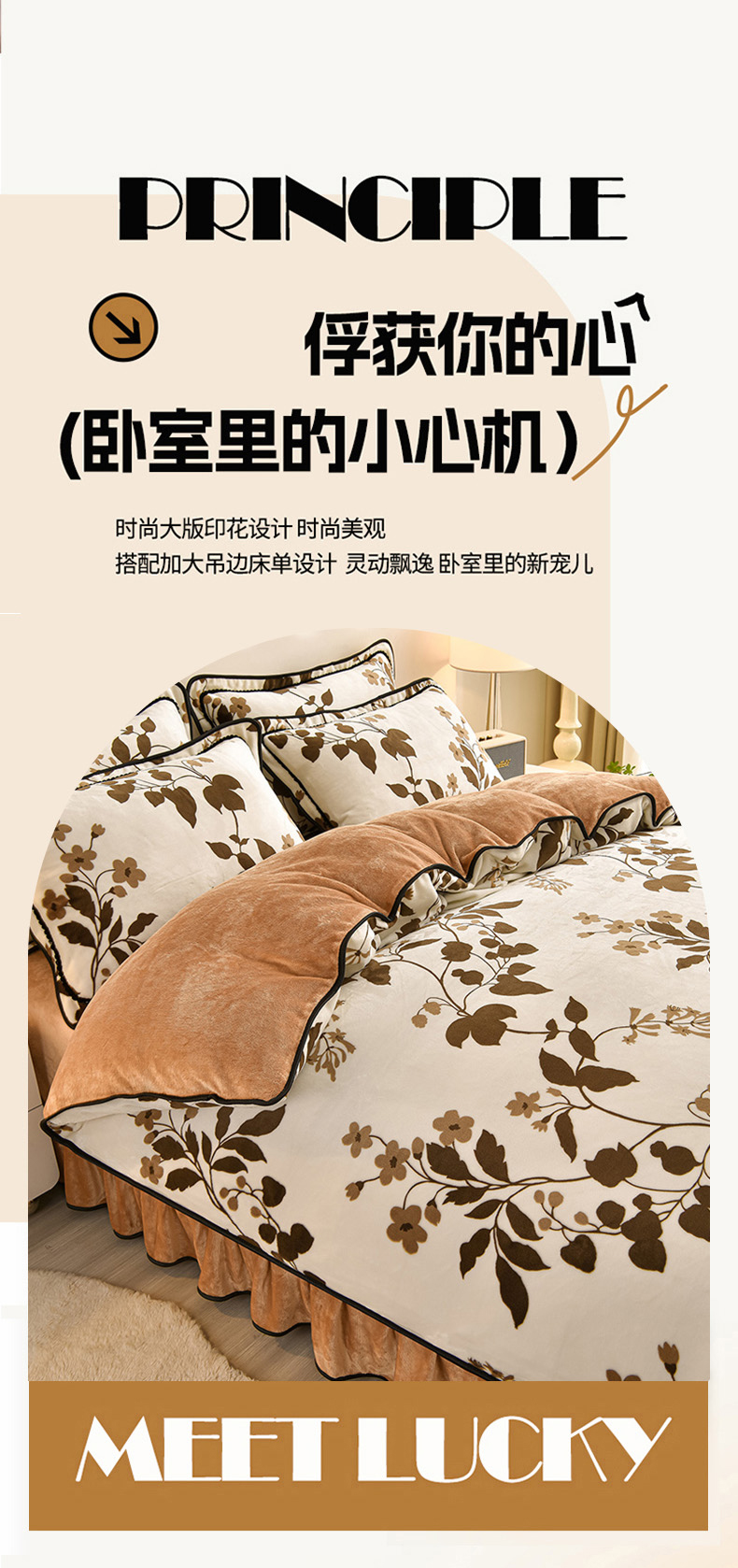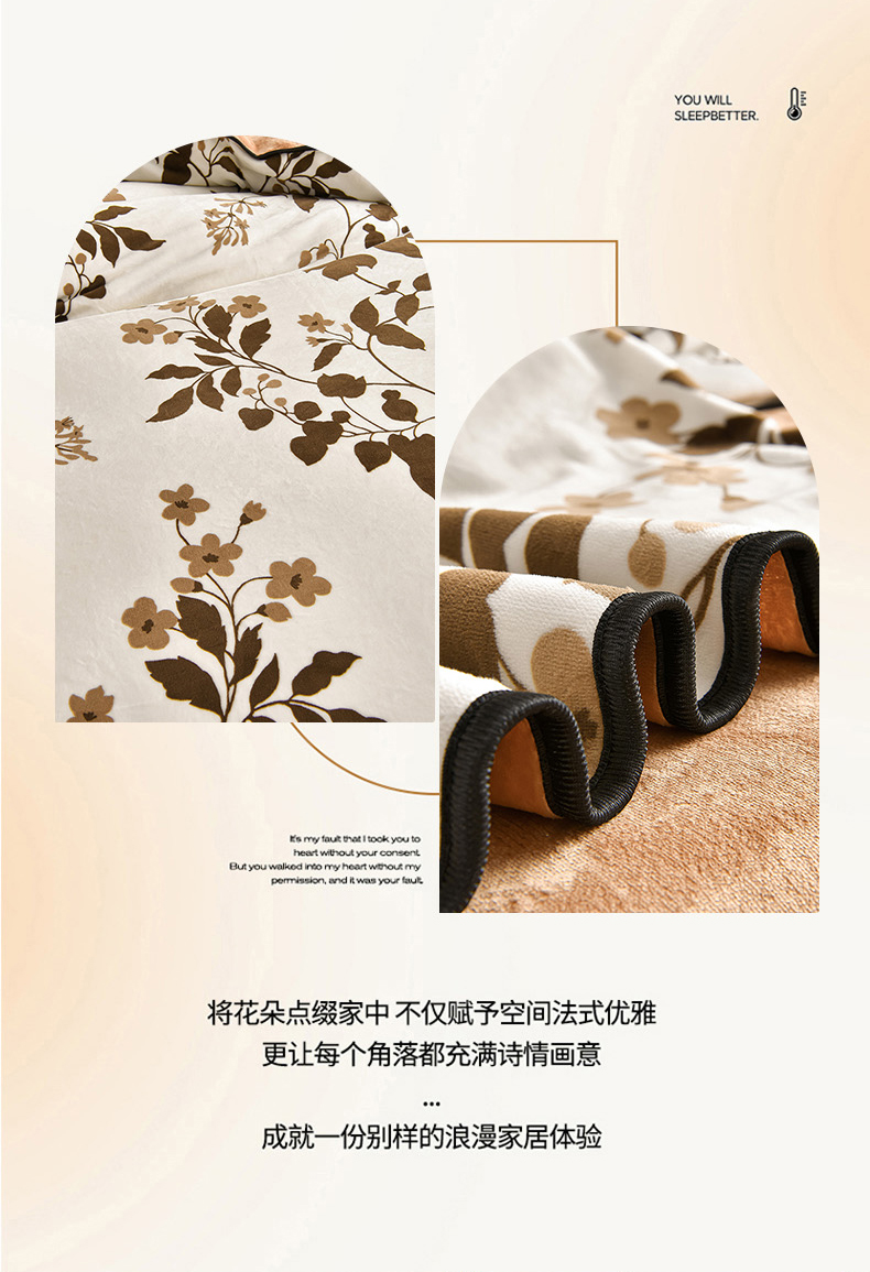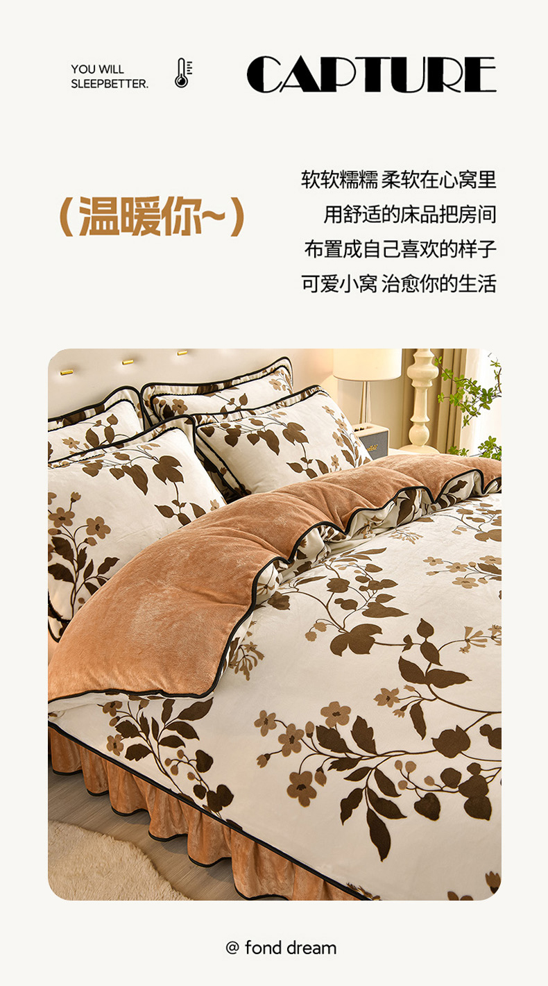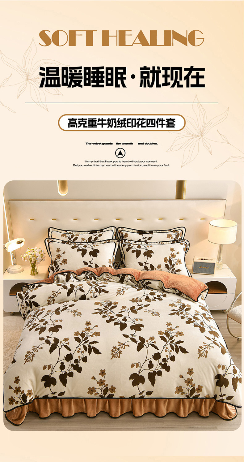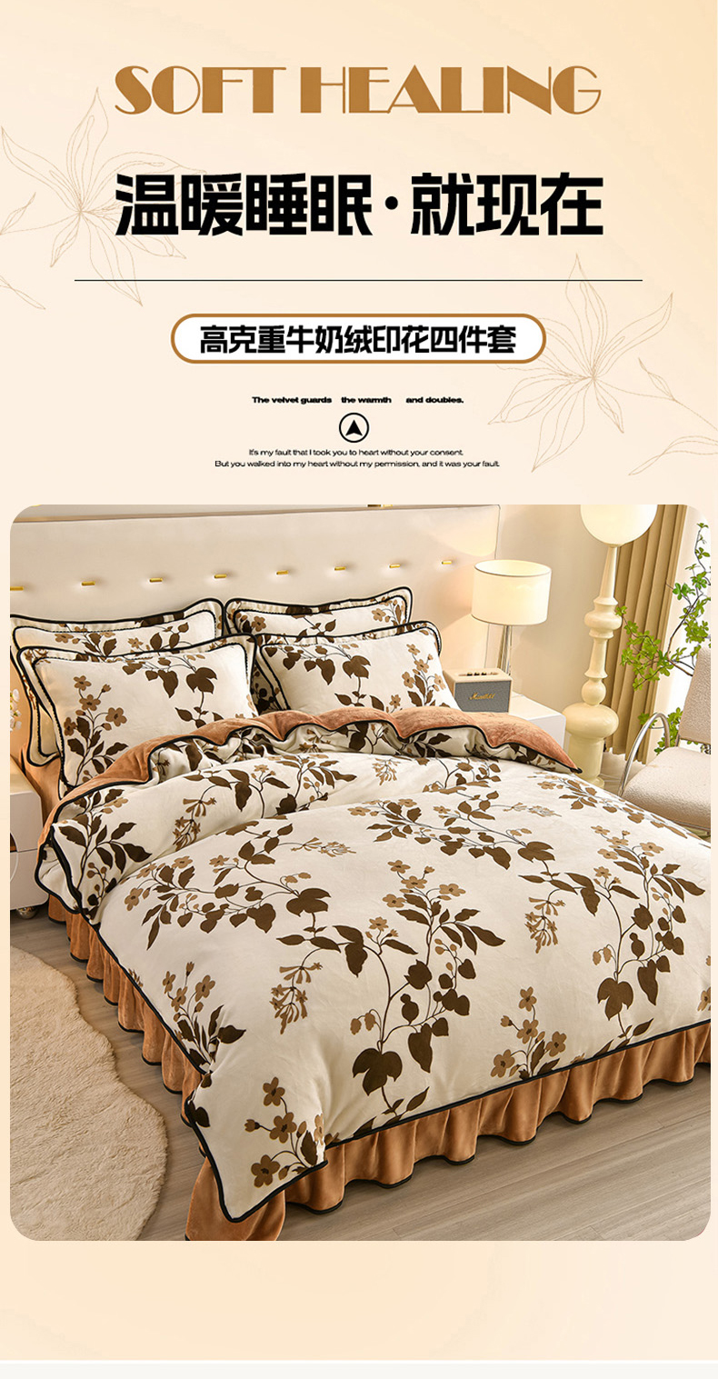 佳一 2025新款高克重8-9斤 印花牛奶绒四件套 花样情怀,花样情怀